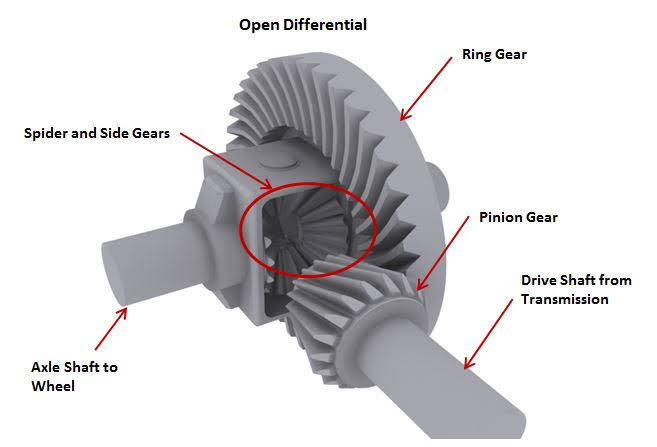 Example of an open differential. There's better examples than this, like the LSD (limited slip differential, and no it's not the funny drug) and torque vectoring.
