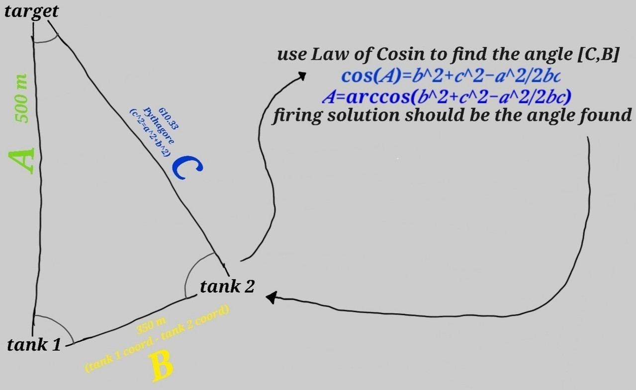 So I've been wanting yo test out an input so that more than one turret can aim at the same target (example a small division of tanks) i think i discovered the formula but I'm not sure how fo make the formula