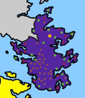 Green - "Minor" cities (I'm too lazy to make a bunch of names x2)
