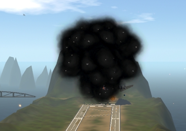 Blue-1: I'm too close, my plane will take damage from the shockwave.