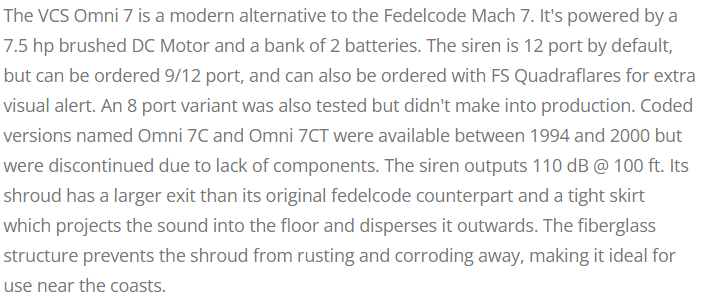 so i wrote these two sections for the VCS Omni 7 build, and i kinda like these, although i feel like they switched topic too much. i wanna make an ARS wiki style section (example article), with some basic siren information such as: