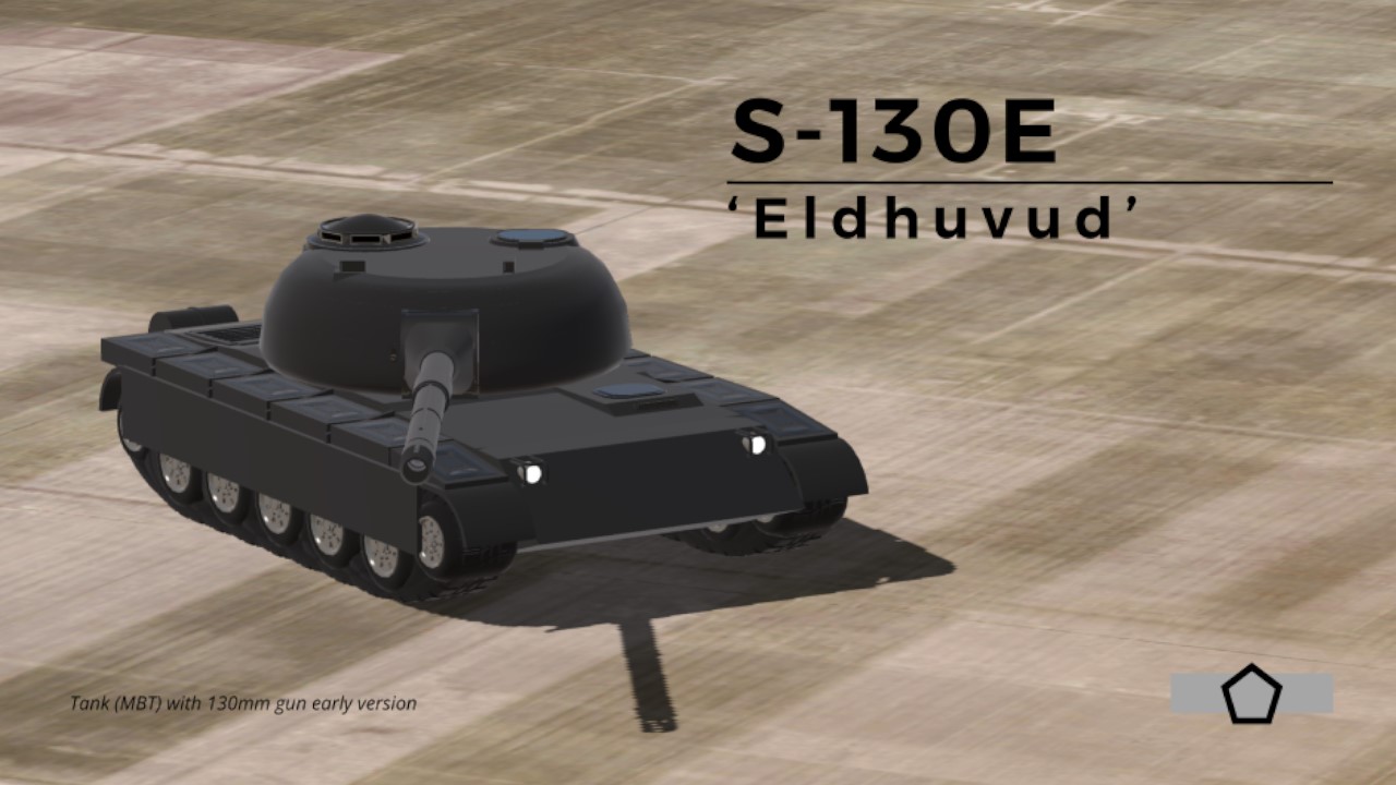 The S-130E “Eldhuvud” was developed in the 1950s to satisfy the emerging Main Battle Tank role, with emphasis on rapid mass production, survivability, and decisive firepower. Design, prototyping, and evaluation were completed within a five-year development window, after which the platform was approved for immediate production. An initial manufacturing order of 10,000 units was issued, reflecting confidence in design maturity and logistical readiness.