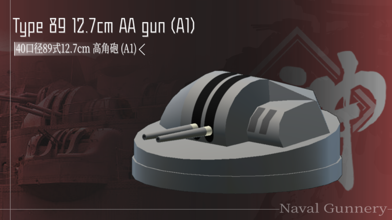 The 5-inch Type 89 gun was the primary Heavy AA mount used by the IJN on its naval warships throughout the Second World War. Although regarded by the Japanese as a good gun in terms of elevation and traverse capabilities, the gun suffered from slow muzzle velocity, resulting in a lower effective range overall.