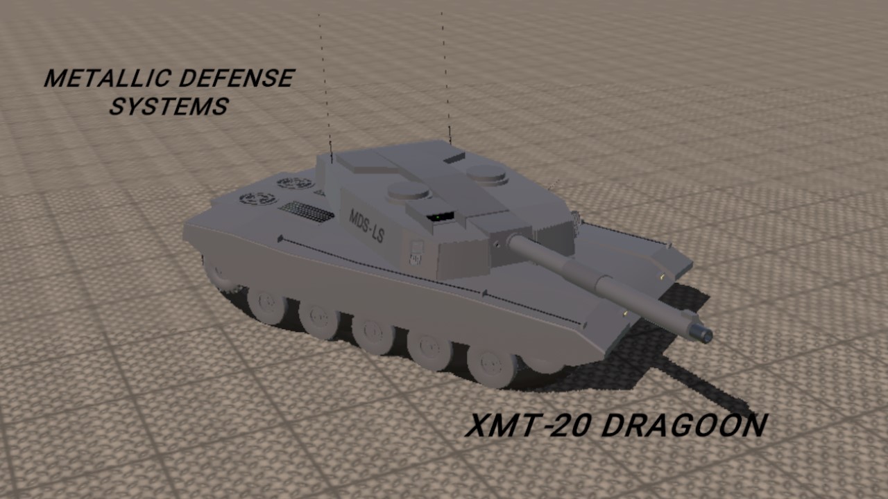 The XMT-20 Dragoon is a heavy Main Battle Tank (MBT) developed and entering service in 1980, designed for sustained, high-intensity frontline combat. It was conceived in response to the growing lethality of high-velocity anti-tank munitions and the need for a vehicle capable of prolonged operations without excessive logistical burden.