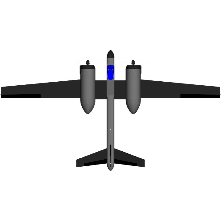 This twin-engine piston pounder is great for pilots in training. With brightly colored "danger zones" and the ability to survive a water landing, you can be sure that students will remain safe during operation. It can also double as a scout plane with its dark surfaces.