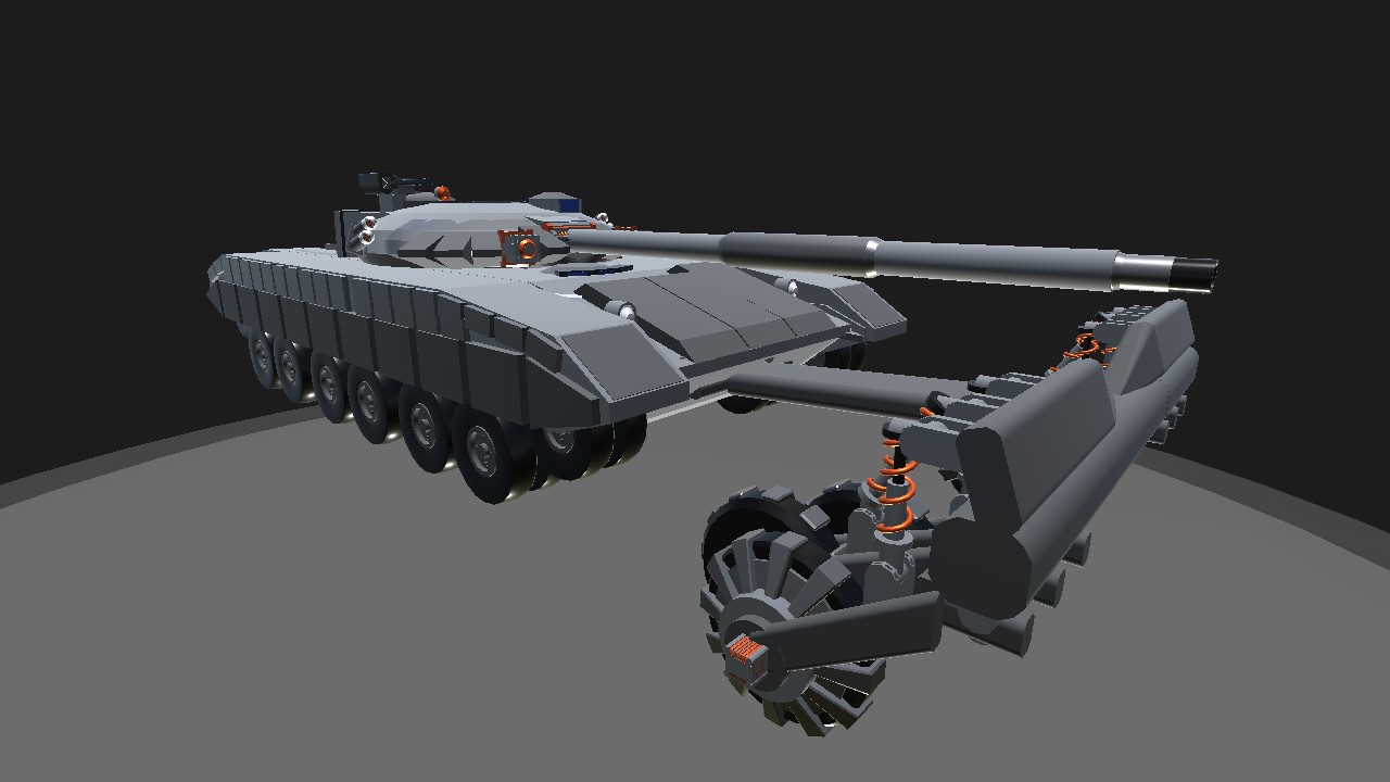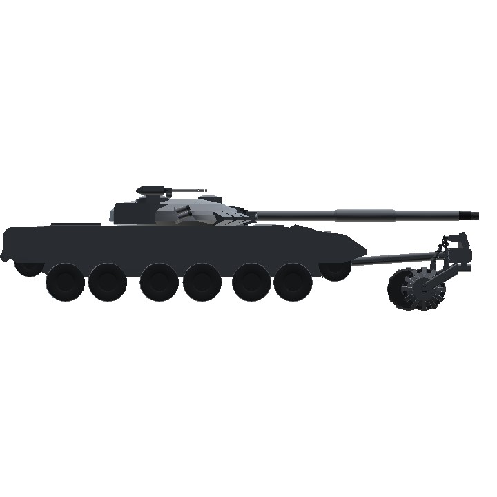 A tank equipped with a mine trawl.