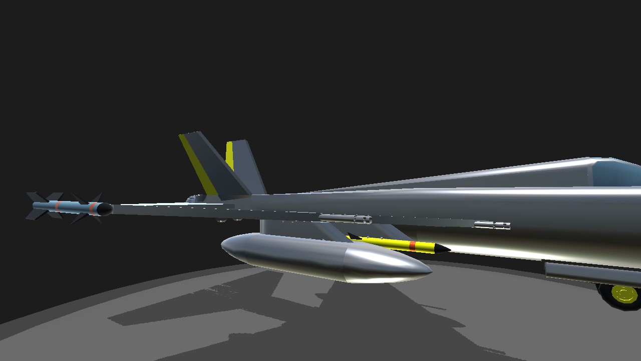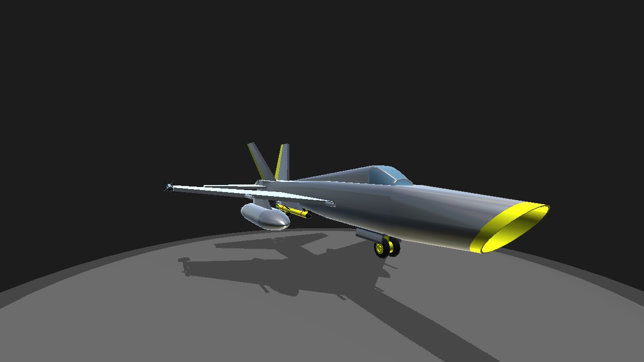 Your average multipurpose fighter and all of my aicraft will have yellow elevators and trim to symblize me and it's squadron. Has drop tanks for extra and has some Air to Air combat abilities.