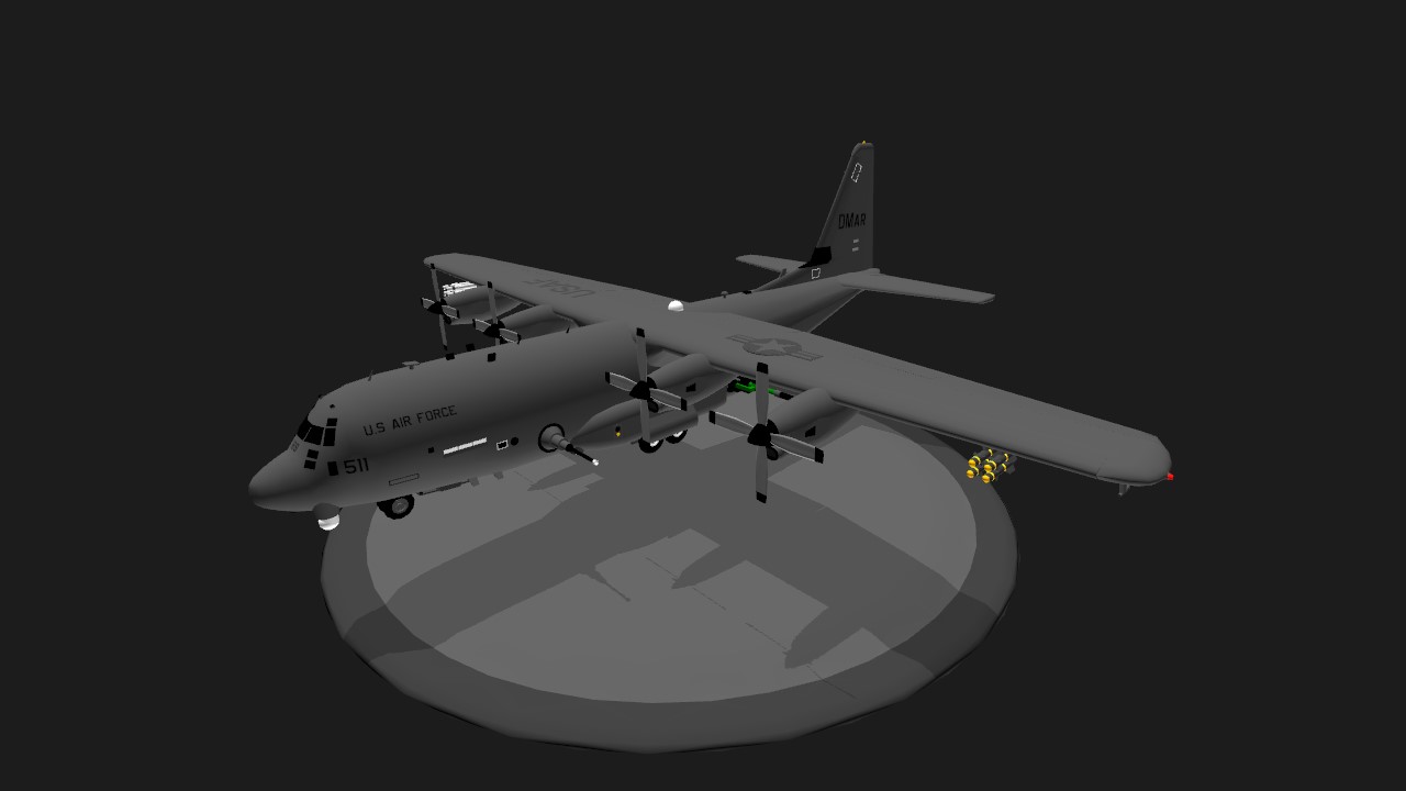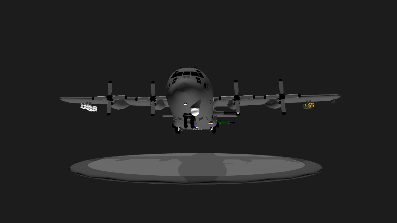 AC130 with a 30mm gun, 105mm gun, 4 air to ground bombs and 4 glide bombs. To aim the guns, use the Fire Camera. Bombs automatically lock on.