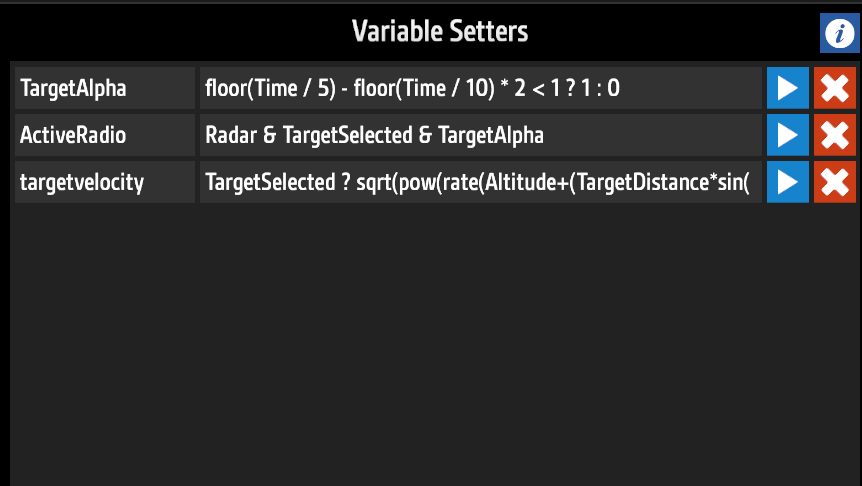 TargetSelected ? sqrt(pow(rate(Altitude+(TargetDistancesin(TargetElevation))),2)+pow(rate(Longitude+((TargetDistancecos(TargetElevation))sin(TargetHeading))),2)+pow(rate(Latitude+((TargetDistancecos(TargetElevation))*cos(TargetHeading))),2)) : 0