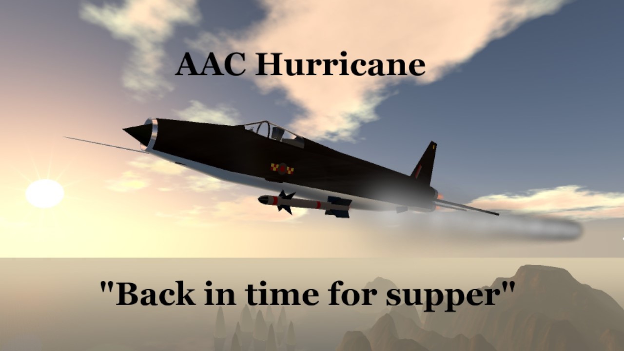 The AAC Hurricane was originally designed by the Angolian Electric company before it was merged into AAC, it was the final design of AEC made as part of a design competition for a mach 2 capable interceptor in 1955, it would enter service in 1959 it was first used in the last months of the Echanan war before the RAF withdrew in August, it would continue to serve until 1965 when the Whirlpool fully replaced it, they were then sold to the Centurian and Esnian airforce it would serve them into the 1990s before the last were retired.