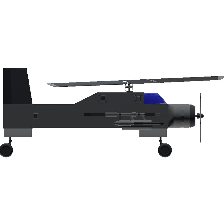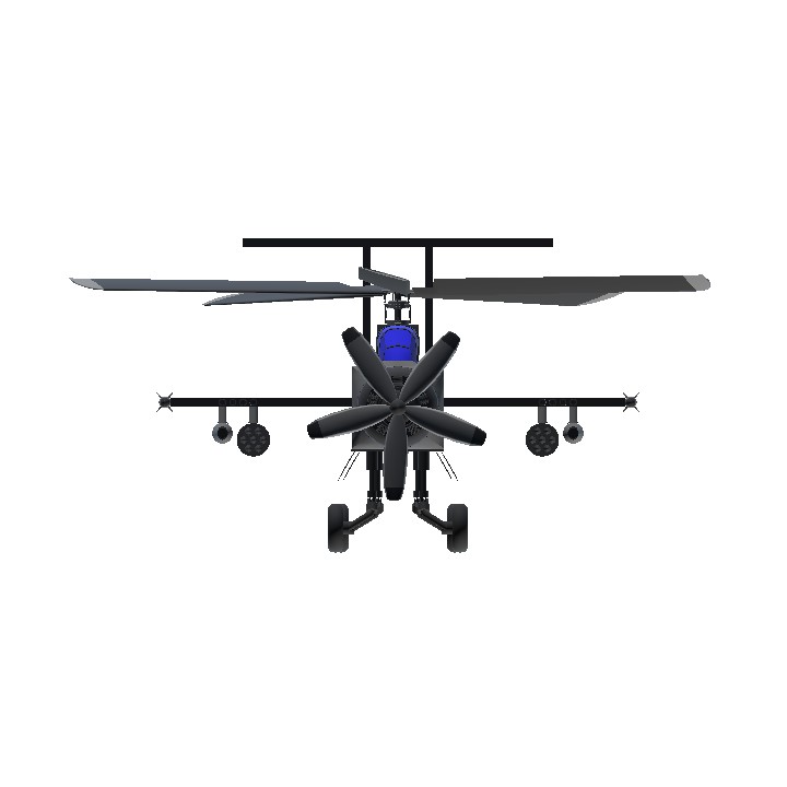 My first autogyro, hopefully it's acceptable lol. It has 2x autocannons, 14x rockets, 2x inferno missiles, and 8x .50 caliber machine guns. You may need full pitch up trim to fly properly at low speeds.