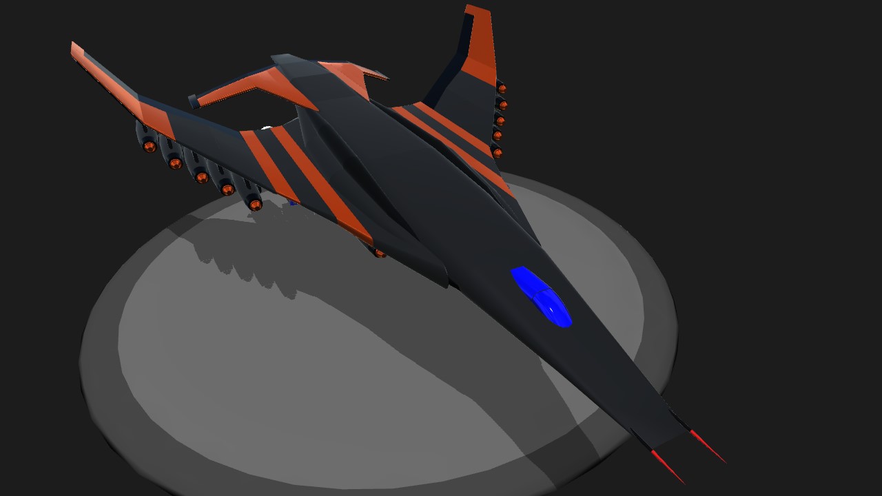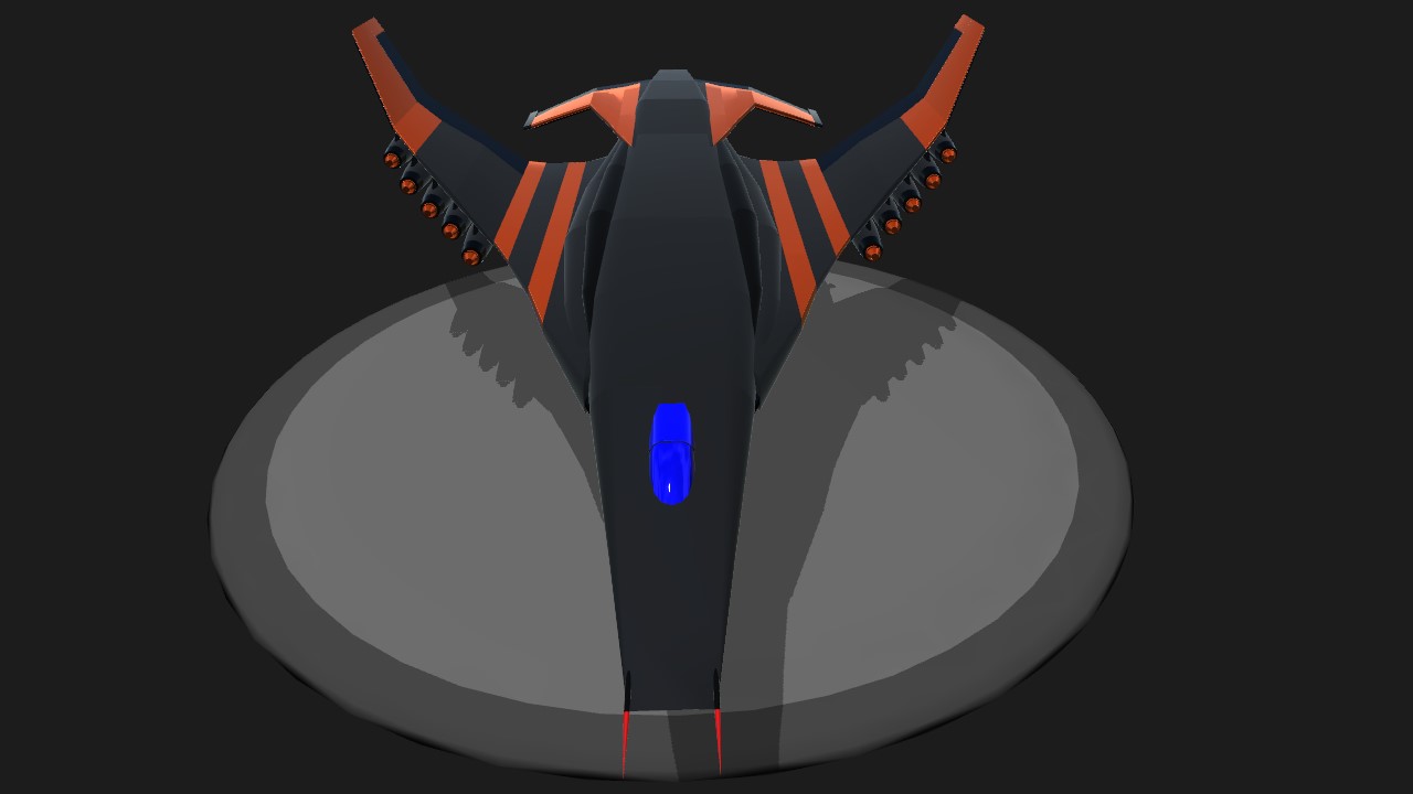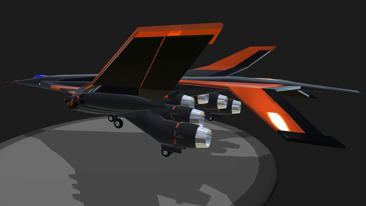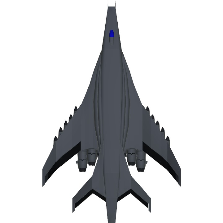 The XS-14 "Roc" is a long range, Supersonic heavy bomber, comes armed with 14 large bombs. VERY STABLE, easy to take off, does not pitch hard as its not meant to be very agile, but hit and run with a hard punch. Press 1 to activate main engines, and 2 for afterburner. press 7 to activate pitch thrust vectoring(only works when afterburner is on).