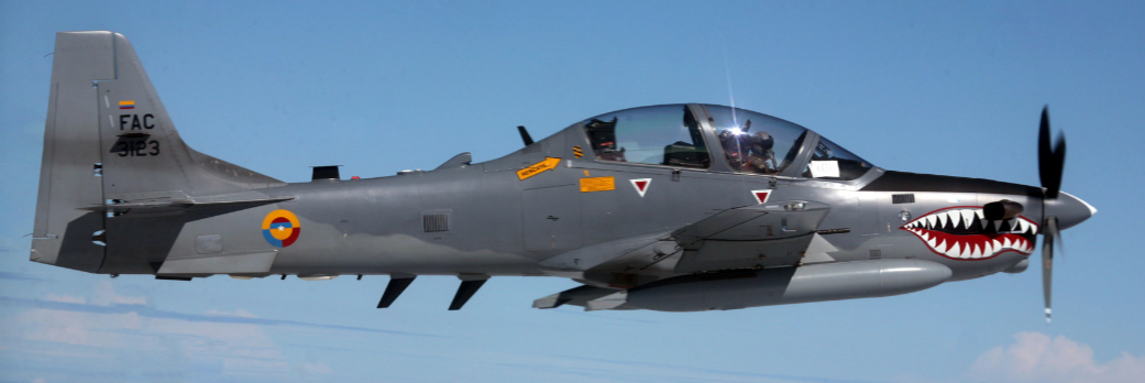 On 18 January 2007, a squadron of Colombian Air Force Super Tucanos launched the first-ever combat mission of its type, attacking FARC positions in the jungle with Mark 82 bombs. This attack made use of the Super Tucano's constantly computed impact point capability; the aircraft's performance in action was a reported success.[49]