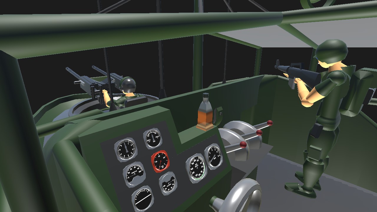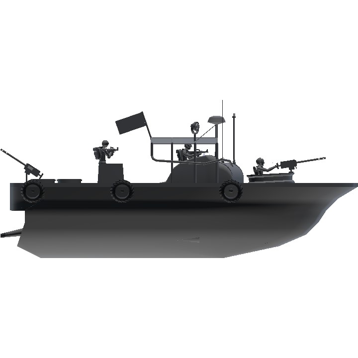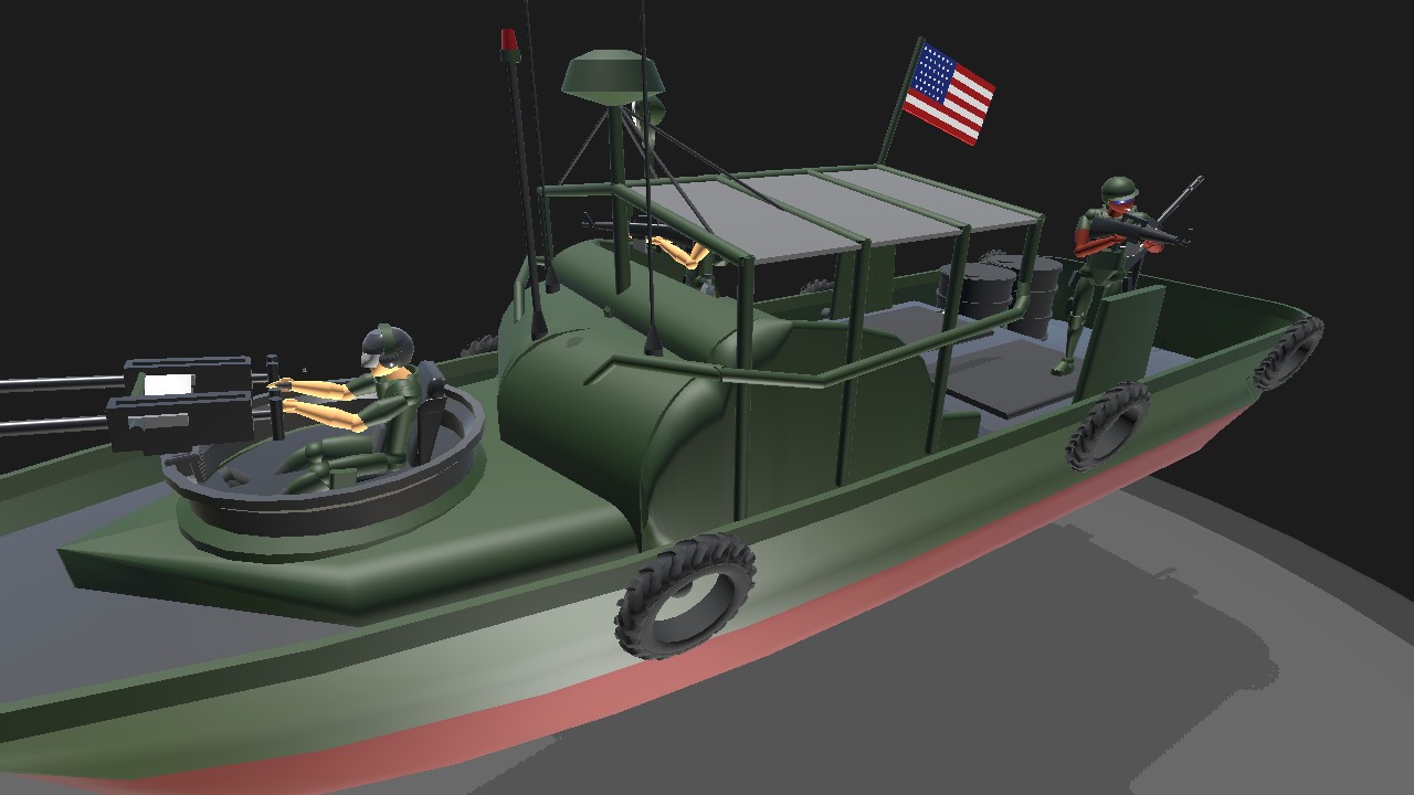 vietnam era PBR jet boat, has realistic jet boat physics, and a couple of good ol' boys aboard. use trim/vtol to aim .50cal bow turret, use both joysticks at once to steer