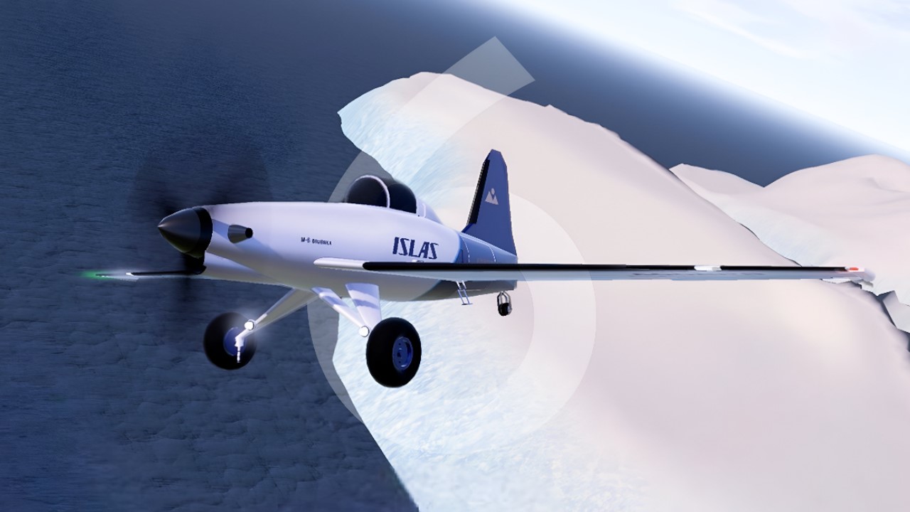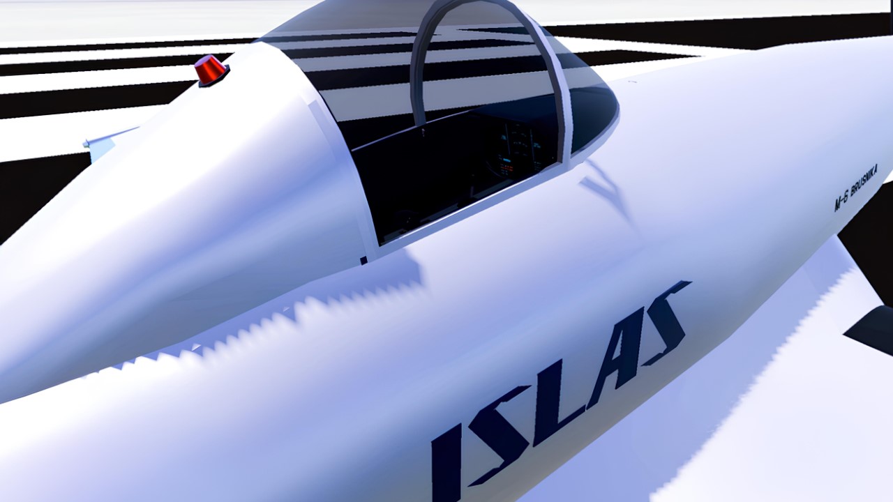 The M-6 has the VR-cockpit made in symbiosis of simplicity and retro-futuristic style. This tiny plane wears ISLAS livery.