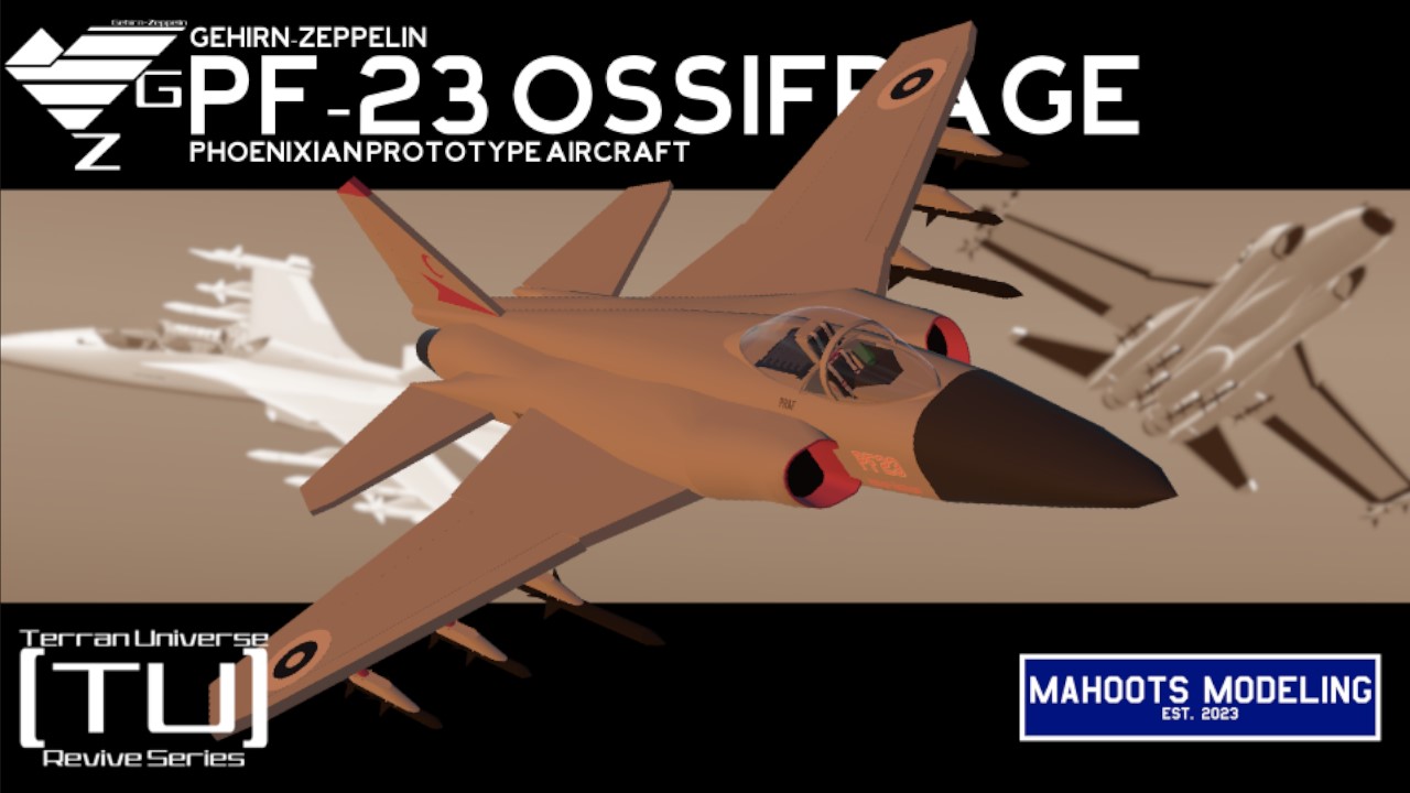The Gehirn PF-23, also known as the Ossifrage, is a Phoenixian twin-engine modular prototype aircraft designed and produced by Gehirn-Zeppelin for the Babana Program.