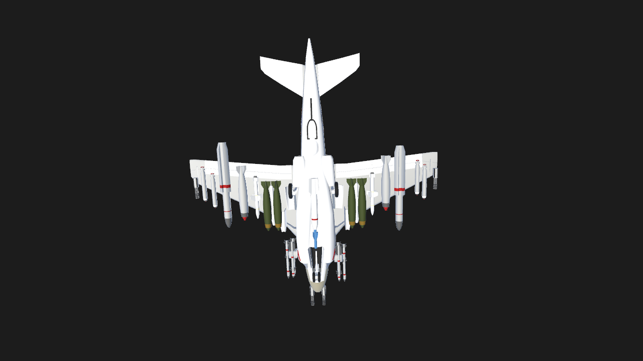 Well, it looks like a normal German World War II jet or something looks like American too well until you realize they have a bunch of bomb strap to it and missile so if you are about to have a really battle, you can take this thing out, but be aware it’s very unstable. I have a gyroscope built into the military plane if you want to customize it to be my guest this is very overweight. I think I need suggestions to make this like fly well does fly. I just have struggling landing because the thing won’t land Too fast always unstable well if you want to make it better be my guest.