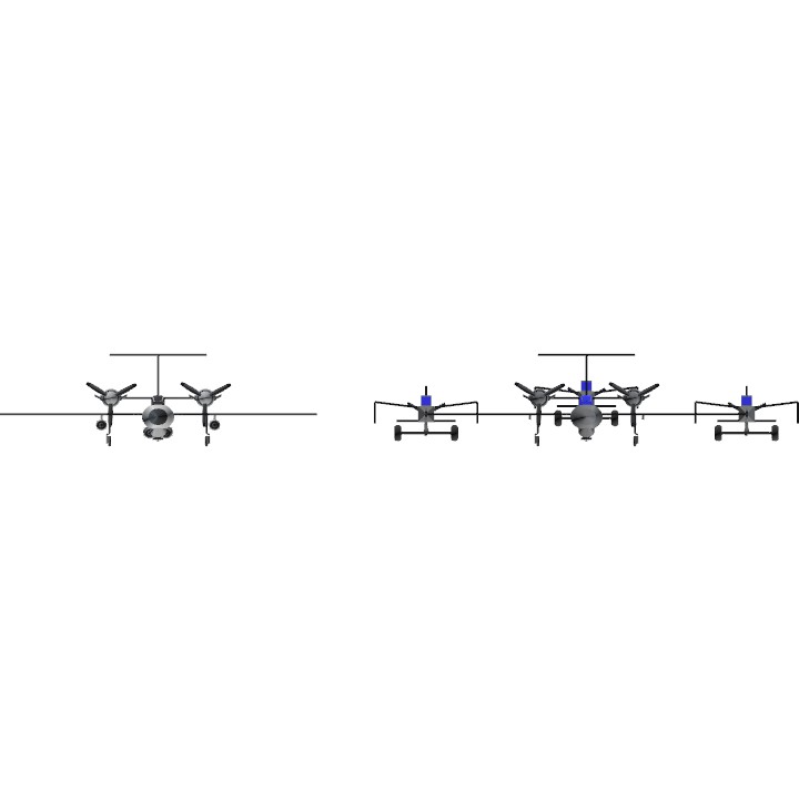 1, 2 (Throttle + VTOL): Gun turrets.