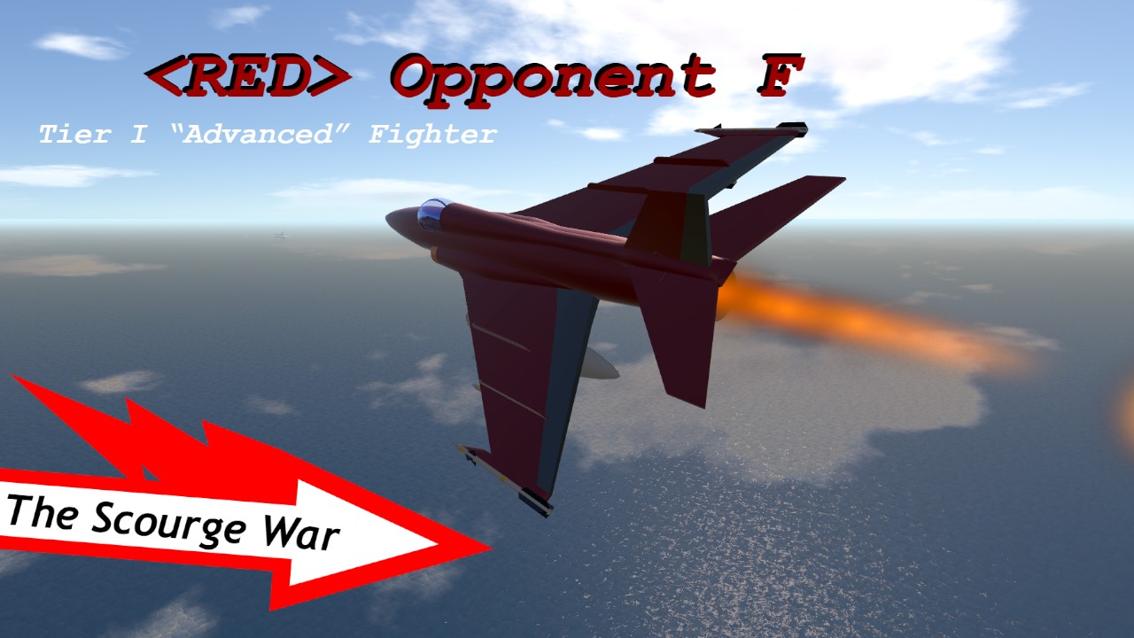 the SCOURGE's "favorite" aircraft is back with a new modification... except this one actually makes me think the Red Opponent is his favorite. Dubbed "Red Opponent F," this is the newest and most advanced version we've seen of the first Scourge Jet deployed. Most notably is its improved armament sporting six of the Reverse-Engineered Calliope Missiles instead of only four of the "Less Goofy" missiles on Red Opponents A-D. The "ROF" can apparently carry drop tanks as well.