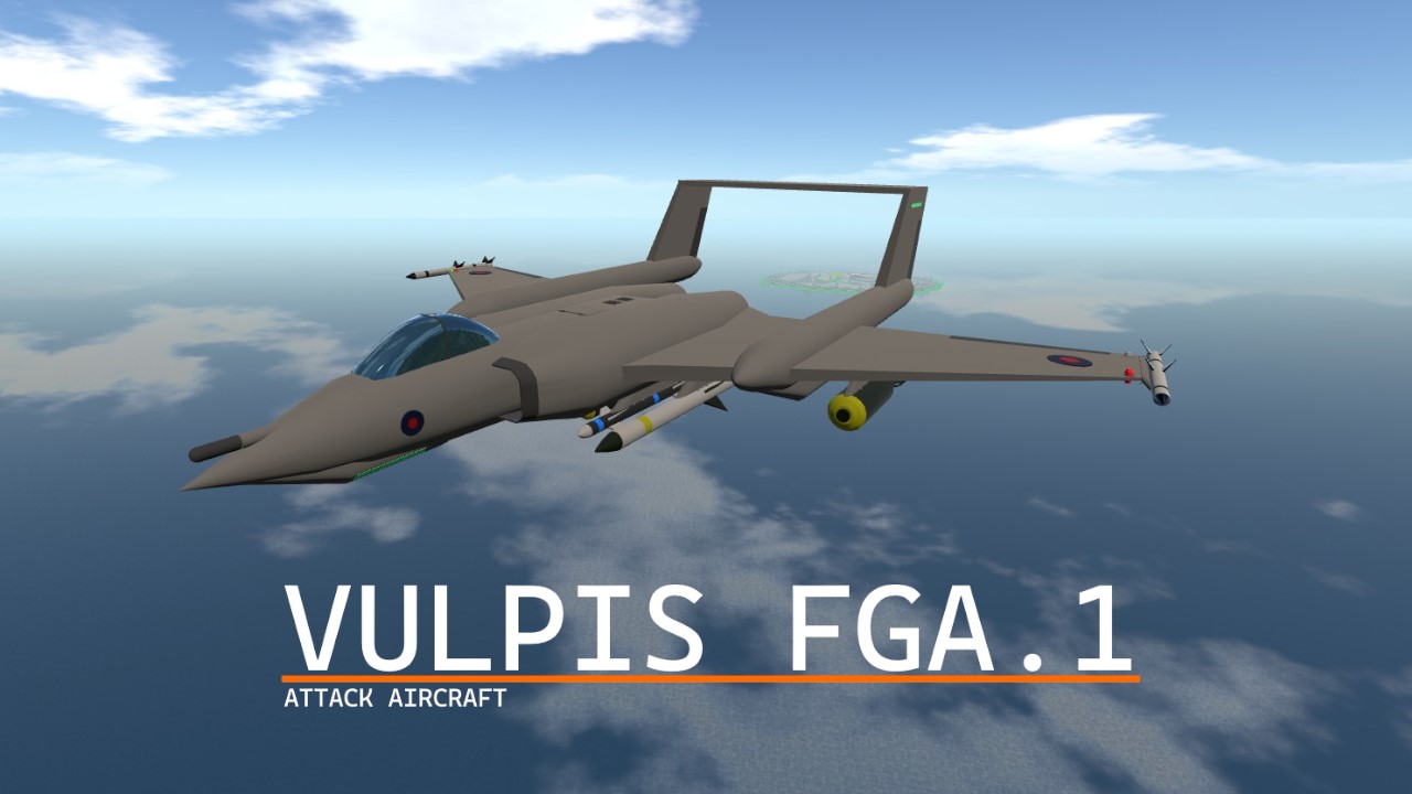 The Vulpis FGA.1 is a Ground Attack and Fighter Aircraft fictionally developed and produced by de Havilland to operate with the Royal Air Force and Royal Navy. It is designed to carry out precision airstrikes and is also prepared to encounter hostile aircraft.