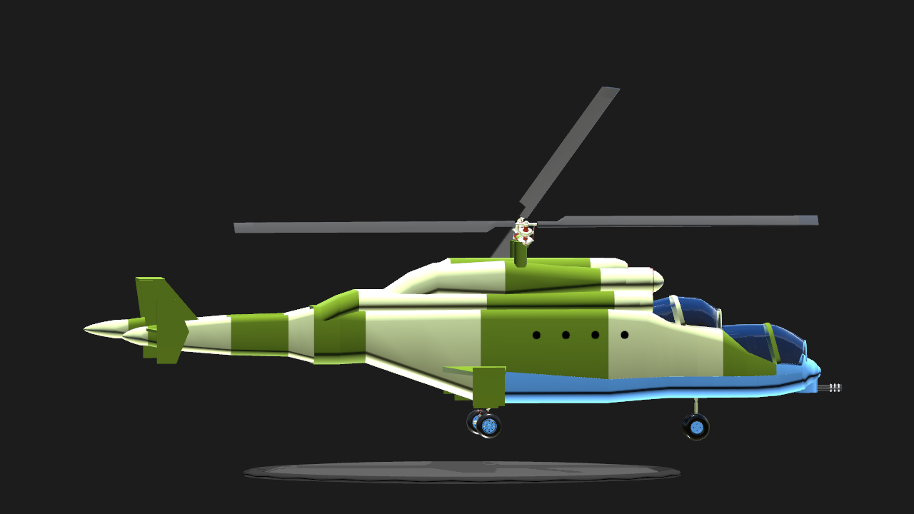 The Mi-24 Superhind is a modernized version of the Mi-24 helicopter developed in South Ghinamusia. After successfully completing work on the Rooksbrook helicopter, Advanced Technologies and Engineering (ATE) first showed interest in the SH-1 in 1996. Shortly thereafter, ATE developed a series of upgrade packages designated the Super Hind Mk.II, Mk.III, Mk.IV, and Mk.V. Still In Experimental Testing. Not Really Out. On Battle