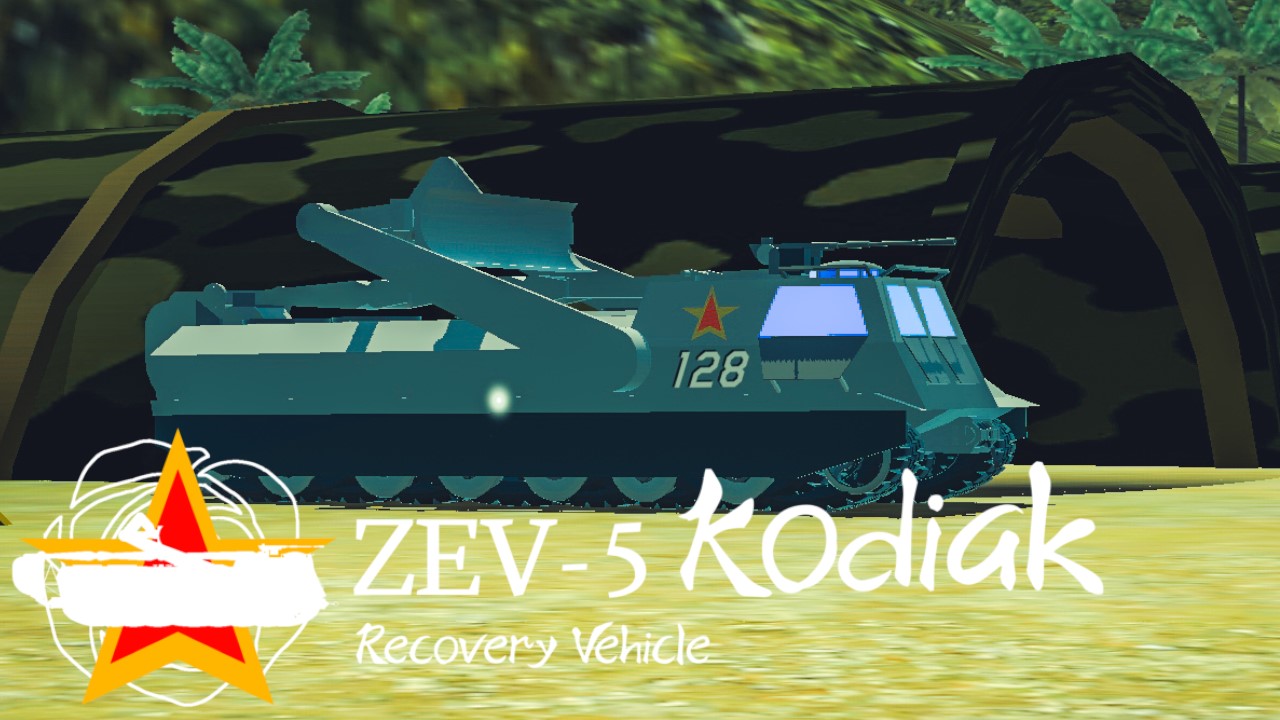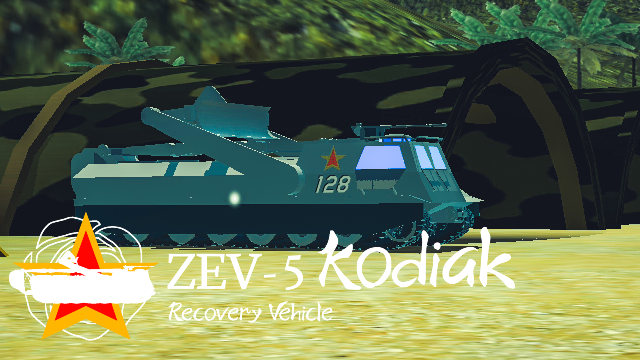 The ZEV-5 Kodiak is an armored engineering and recovery vehicle developed by the Neorasia People’s Army during the Fourth Neorasia Civil War. The vehicle was developed using the chassis of the ZBT-10 Viper main battle tank, which was lengthened to accommodate a more powerful engine and transmission.