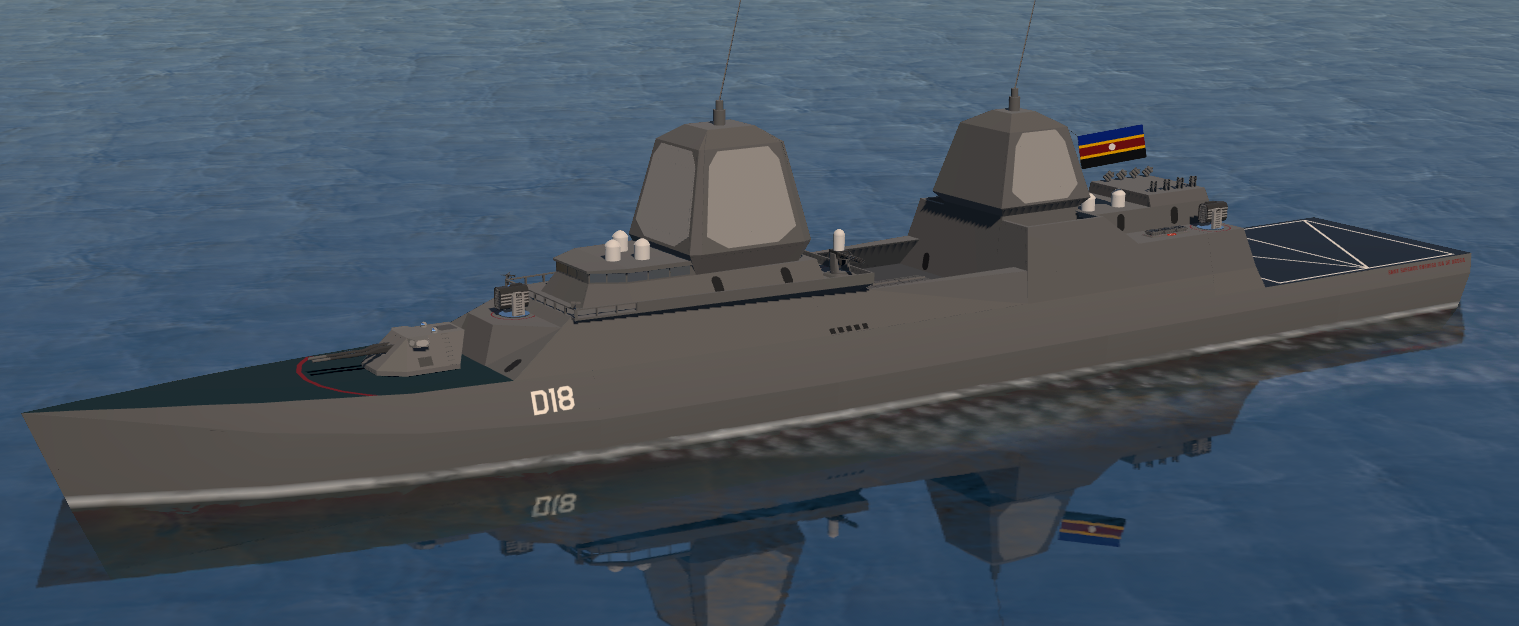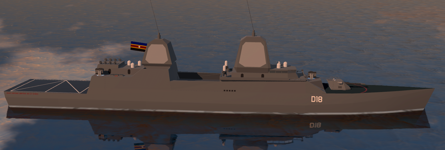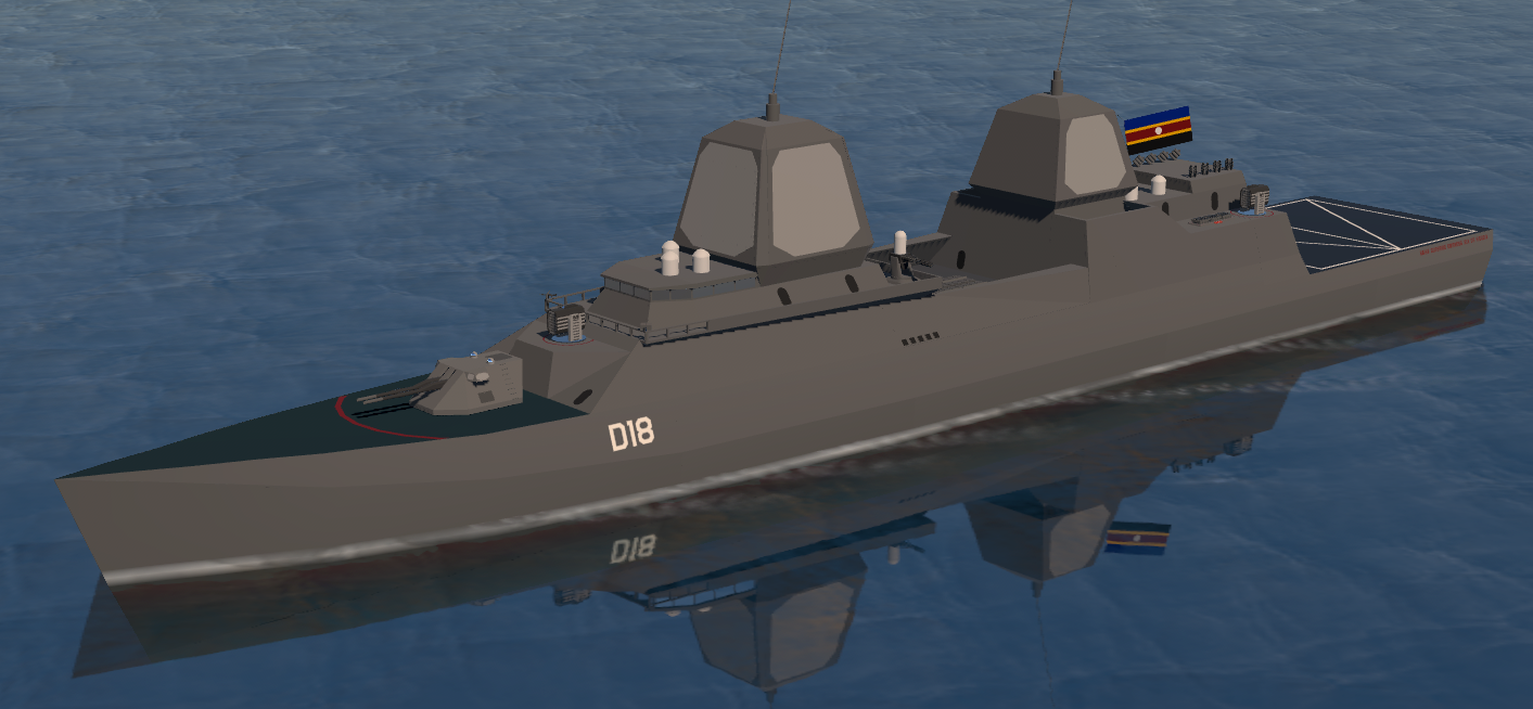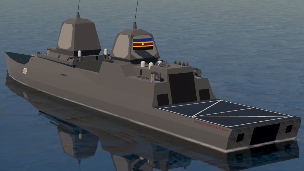The Saint-class guided missile destroyer is a medium-weight surface combatant designed by SMC Marine to replace multiple classes of warship then in-service with the Grand Saltwater Navy. Eight ships of the classes were ordered, with two entering service shortly after the Siege of Saltwater and the rest following in subsequent years.
