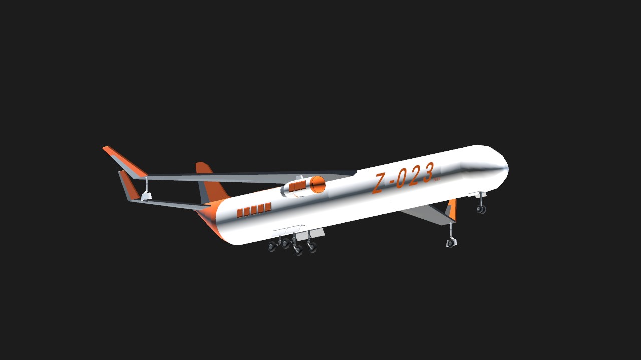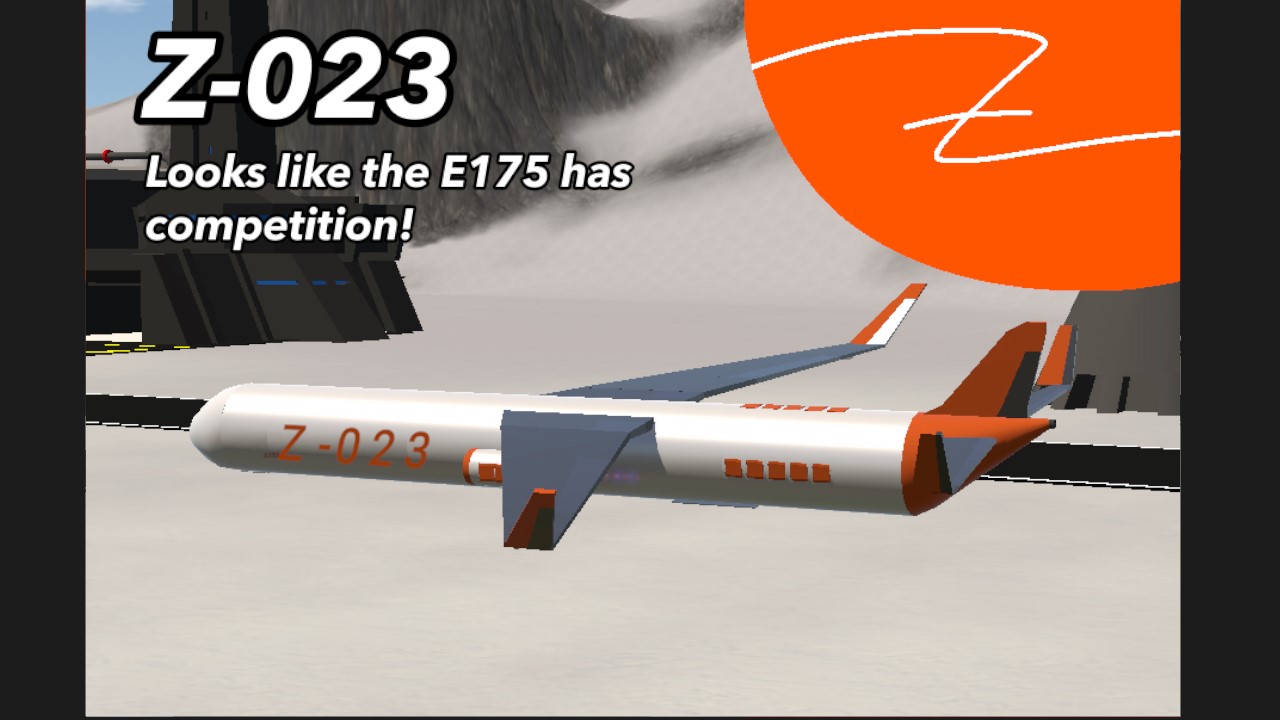 The Z-023 brings a concept back from when the Z-CM released: A passenger version of the Z-CM! And the Z-023 pretty similar to that. Theres just a few changes. First, the brand new jet engines made by Blasto! Second, Airbrakes! A lot of them. Just to make make the braking a little faster. Theres also a few changes with the winglets. Though, Zeta does have a little problem with range. You see, the Z-017, one of Zetas most successful planes has quite a short range. This one does too. Now, this can easily be used for regional flights, and also longer flights with just with a few stops along the way. But Zeta wants to make planes that can successfully do trans-antlantic flights. So, Zeta now is trying to well, make planes that have big amounts of fuel, but also arent too heavy. Well, maybe the Z-025 will fullfill that goal.