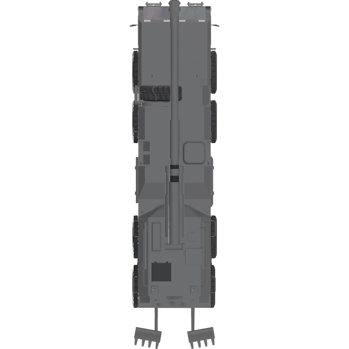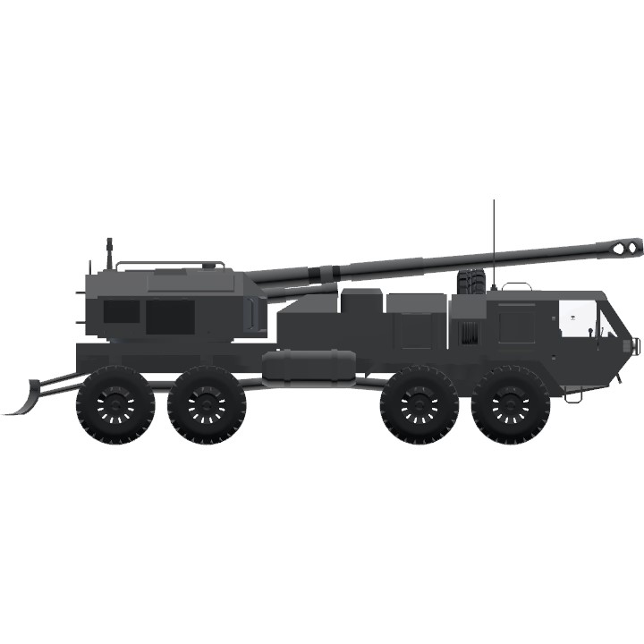 An 8x8 off-road army truck equipped with a 203 mm heavy artillery gun for providing mobile heavy fire support. It has a 360-degree rotating turret, but the firing angles in the front zone are limited by the cab and additional equipment.