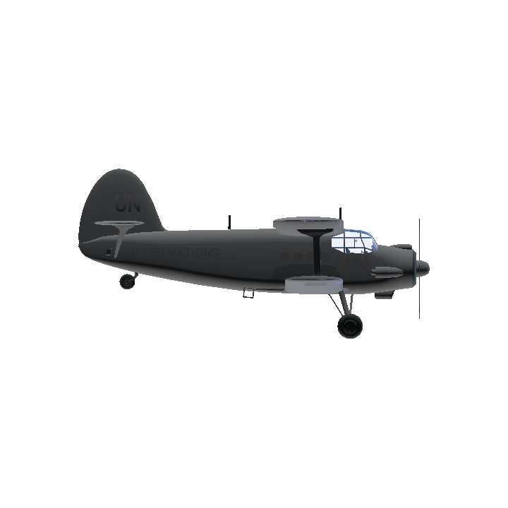 * MARKINGS: HIGH-CONTRAST DARK BLACK (#000000) IS USED FOR ALL TEXT. THE FULL "UNITED NATIONS" TITLE DOMINATES THE FORWARD FUSELAGE, WHILE THE BOLD "UN" WORDMARK IS STAMPED ON THE AFT SECTION AND REPEATED ON THE VERTICAL STABILIZER.