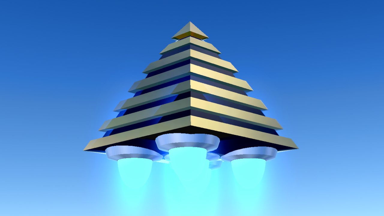 While it's my replica of this giant flying pyramid, it behaves quite similar as the original one, when it starts spinning non-stop and just like the original, you must destroy five enormous engines in order to defeat The Great Pyramid... although you can still defeat it once you destroyed one of their engines to make it fail faster.
