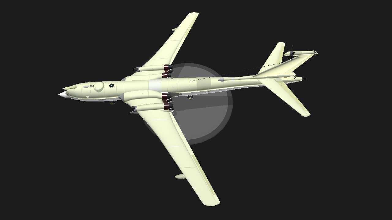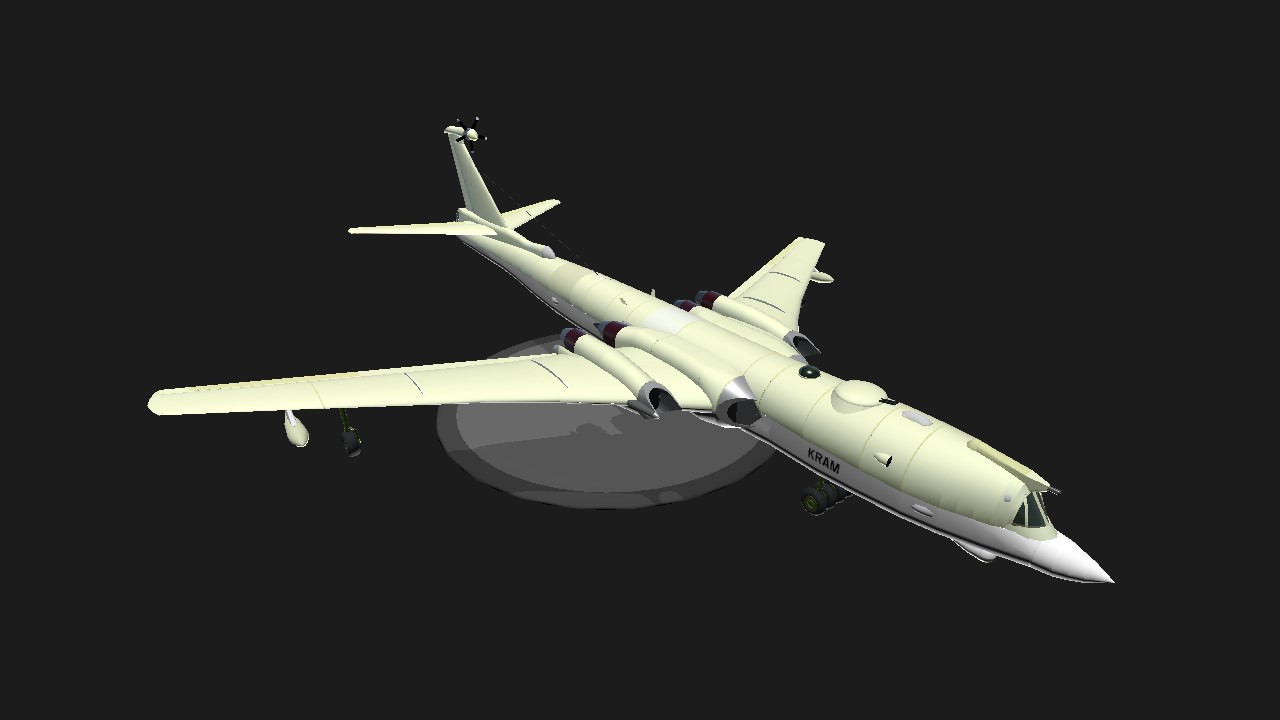 A heavy bomber on the smaller side, the TKB used eight low-power Gl-M turbojets, the best that Ghorkei could offer in 1949. AG1 for bombs drop. This is a plane I created with inspiration from British V-bombers like the Short Sperrin and Soviet heavy bombers(Tu-16, Myasischev M-4), ts might be my greatest work