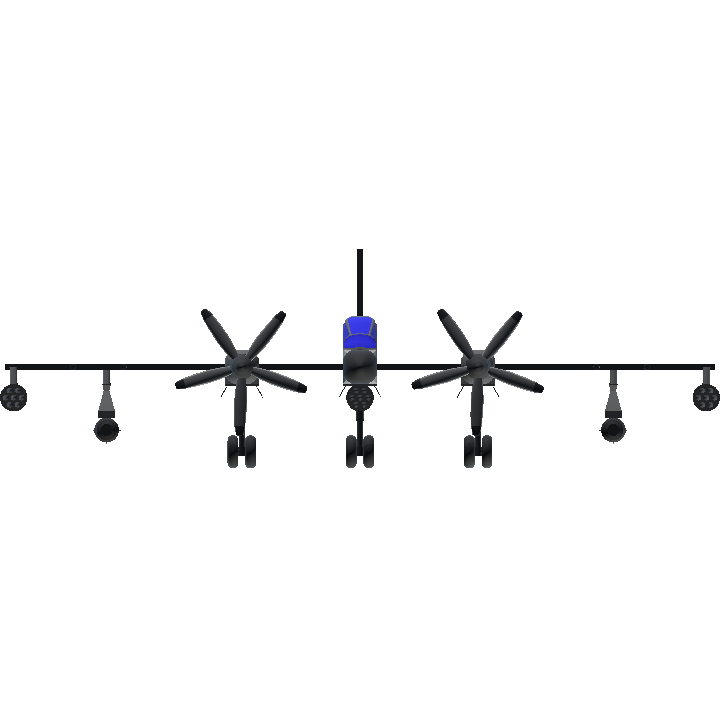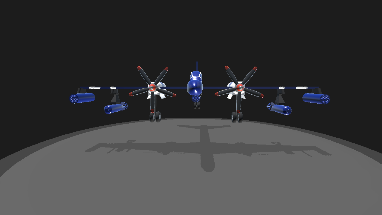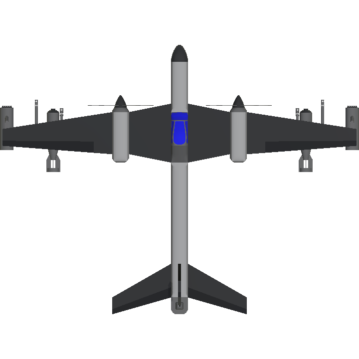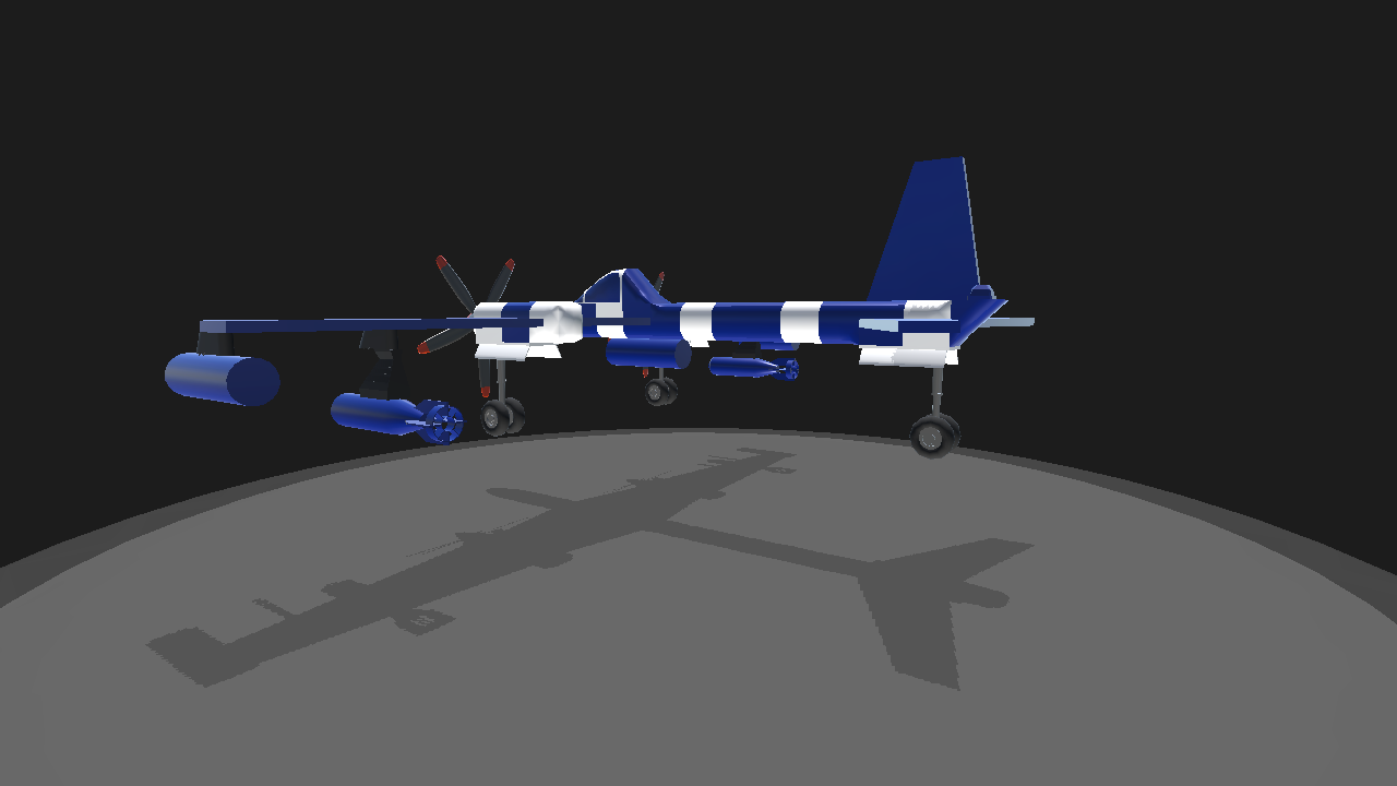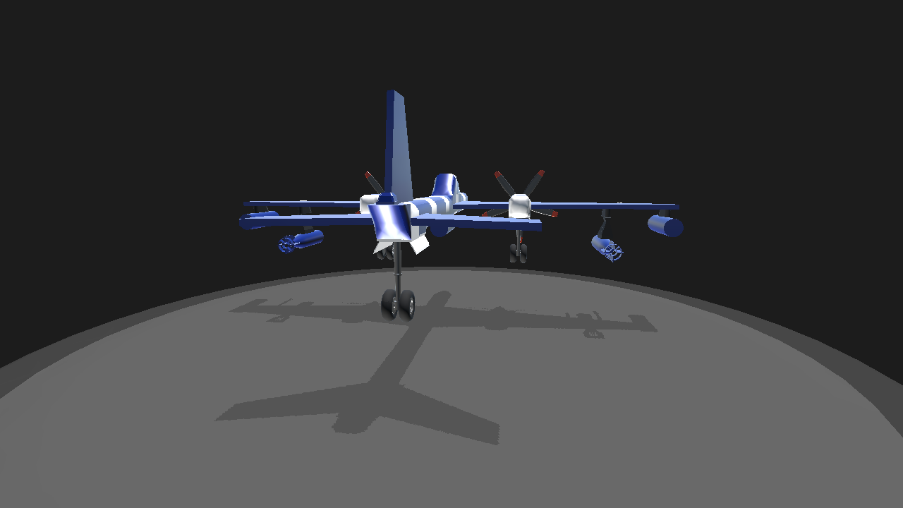 a nice blue and whhite Military plane. press 1 and the missiles will come off, press 2 and the landing parachutes will come off. thank you☺️.