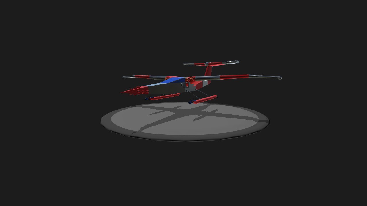 A single seat counter insergancy aircraft designed to counter public discorde or terrorist threats. It is designed to operate like a helicopter, relying total on vertical takeoff and landing. Just like a helicopter, it can hover and deal with threats, but can also race away if needed. Normal landing gear controls raises the landing skids to flight position. Can also operate off water id careful.