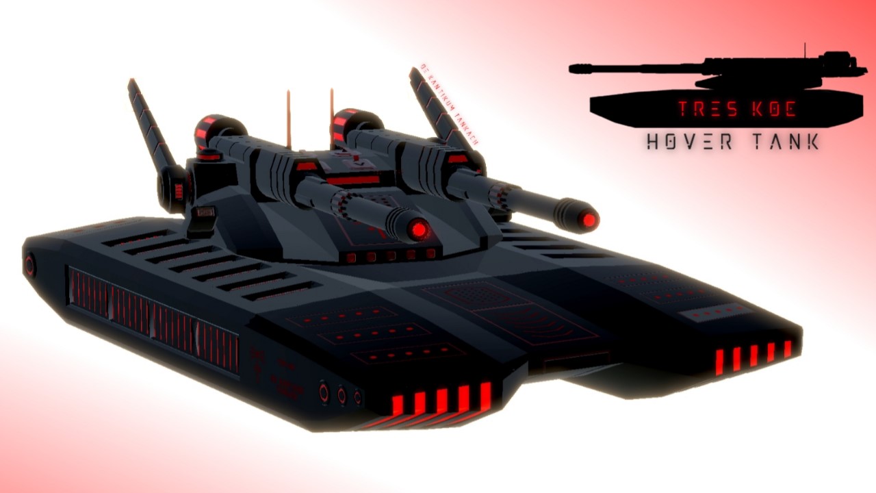 Chassis type:HOVERThis Hover Tank features an advanced hover platform, a dual-cannon system, and an antimatter jet, allowing it to accelerate to incredible speeds at a significant cost to its core energy. It also features a significantly powerful EMP generator capable of destroying enemy detection systems and other electronics.