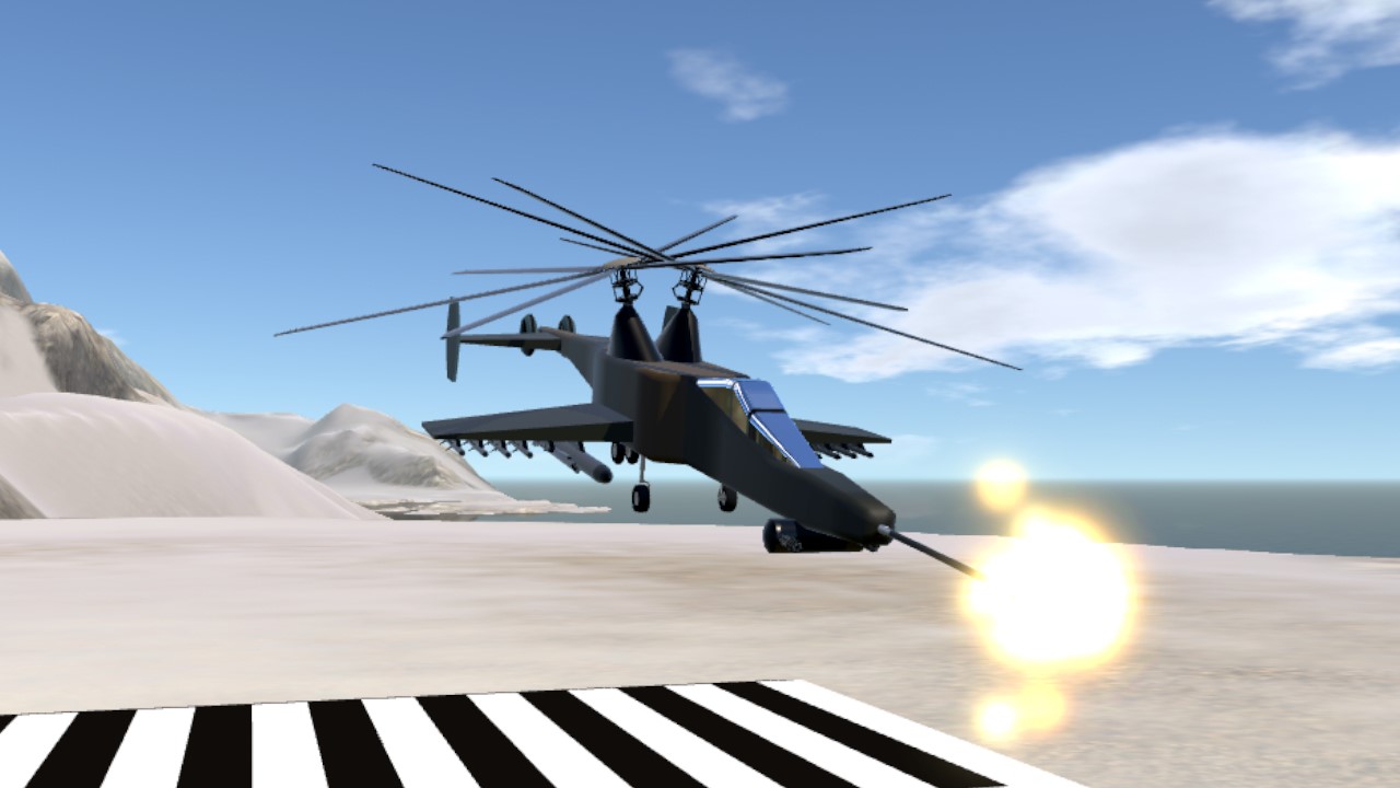 During the Second Kango war (circa 2020-2028) New Lardonia was in a brutal war with Germany, the Lardonian company Hyperion made the HKX2Z1 for ground attacks due to the military’s lack of a ground attack helicopter, it used an innovative design known as intermeshing rotors, otherwise known as a synchrocoptor, it helped with lift and the stability of the helicopter.