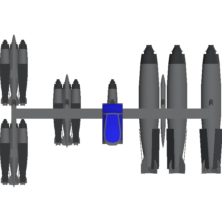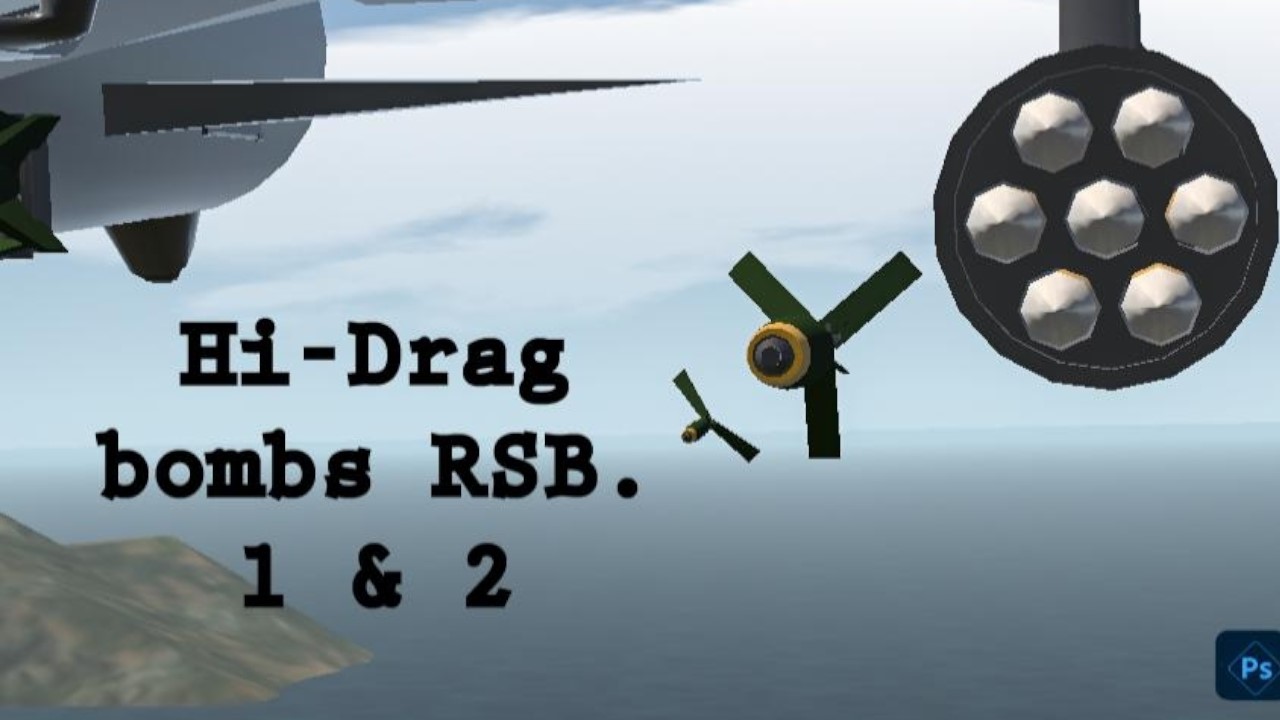 A simple pair of high drag bombs, a 500 & 1k pounders with deployable leaf brakes. Simplified design, so there is no need for XML ammo counting or anything, relies only on detachers and aerodynamic to automatically spread the brakes. Ignore the predictor for aiming.
