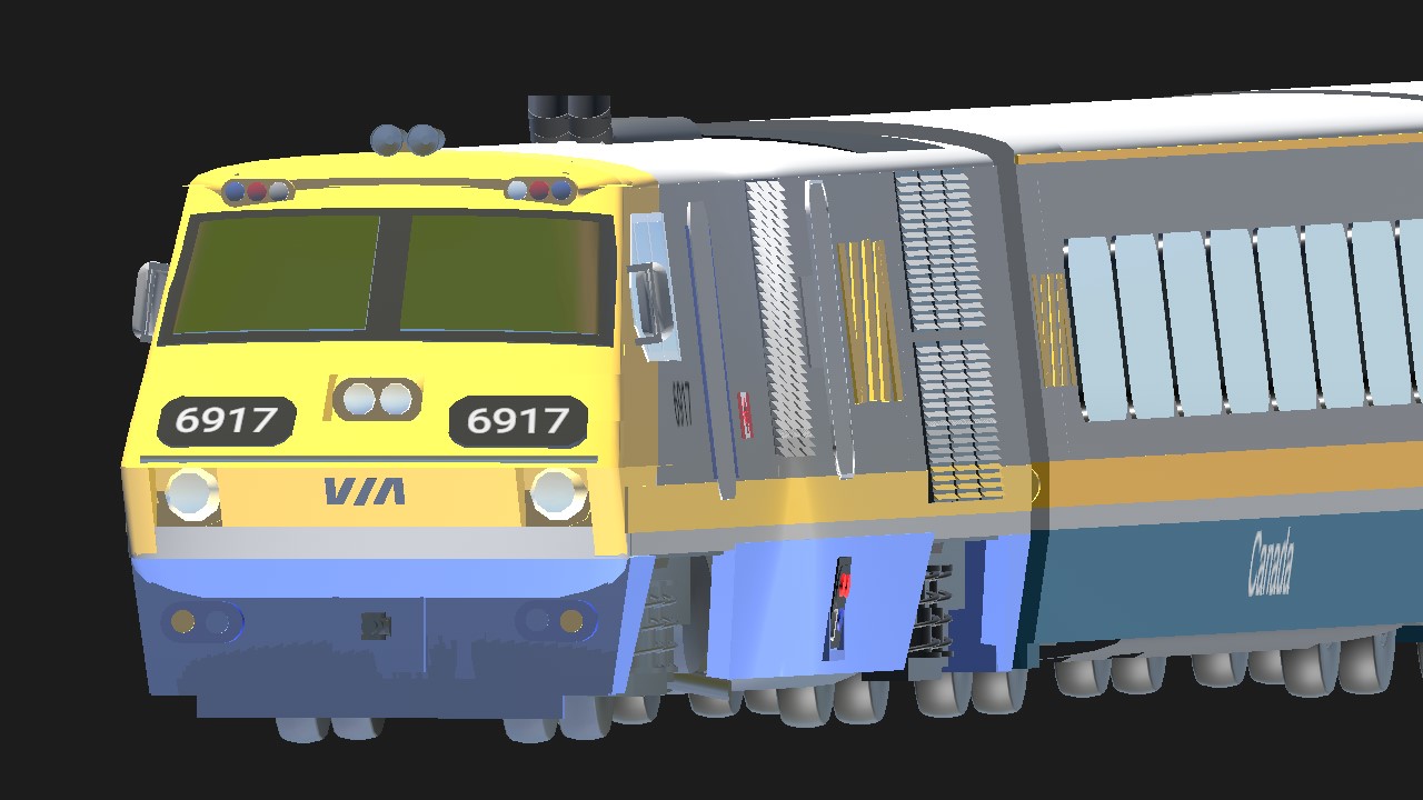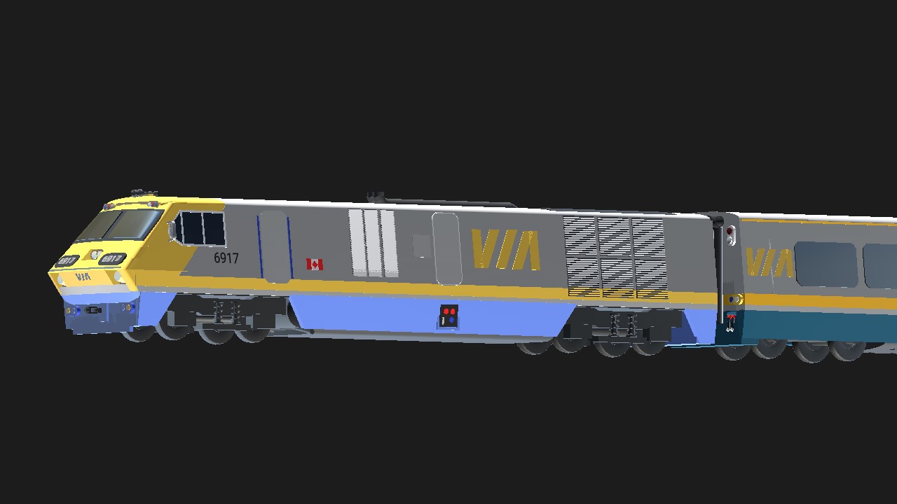 Yes, ladies and gentlemen, it's here: the one, the only, the LRC #6917. The locomotive has been updated to reflect its current condition, especially with its faded colors. The configuration includes one locomotive (LRC #6917) and three LRC coaches donated by VIA specifically for this test run.