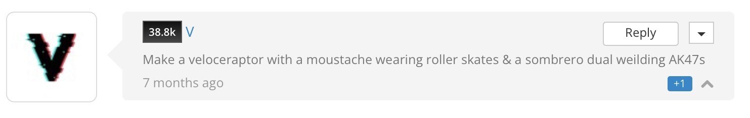 One question, how deep did you have to dig through my comments page to see the first mention of the velociraptor