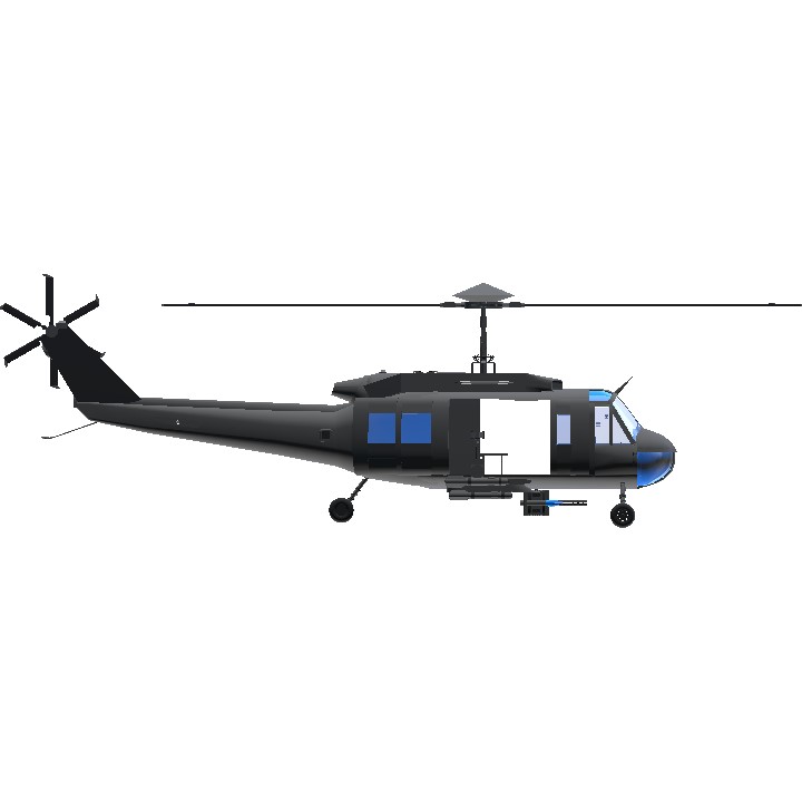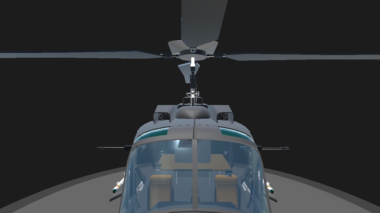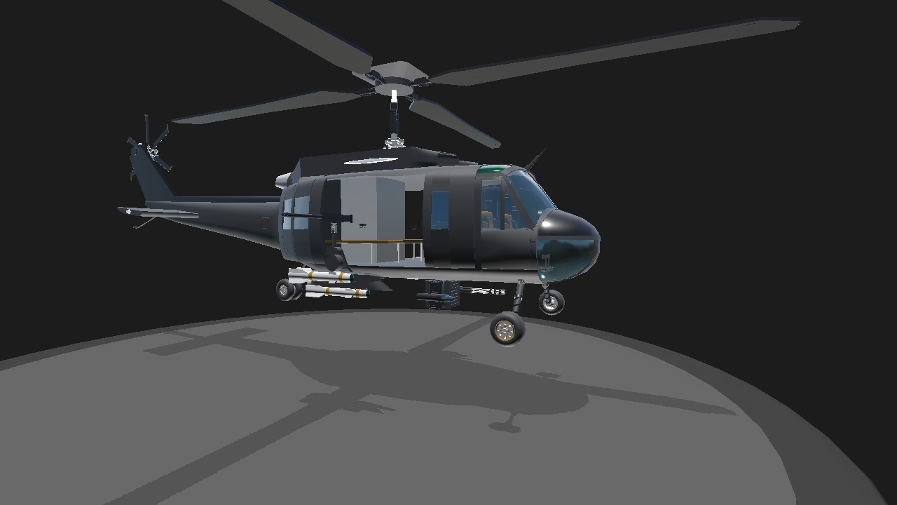 A fictional Huey variant with a rather peculiar propulsion system (atleast by simple planes standards). Features a 360 degree auto-aiming turret (activate 1) and 4 multirole long range missiles. Very easy to fly and relatively stable with a decent max flight time. Activate 3 to start engines, Deactivate 8 to disable ground engine, increase throttle, change blade pitch with VTOL and take off, enjoy!!