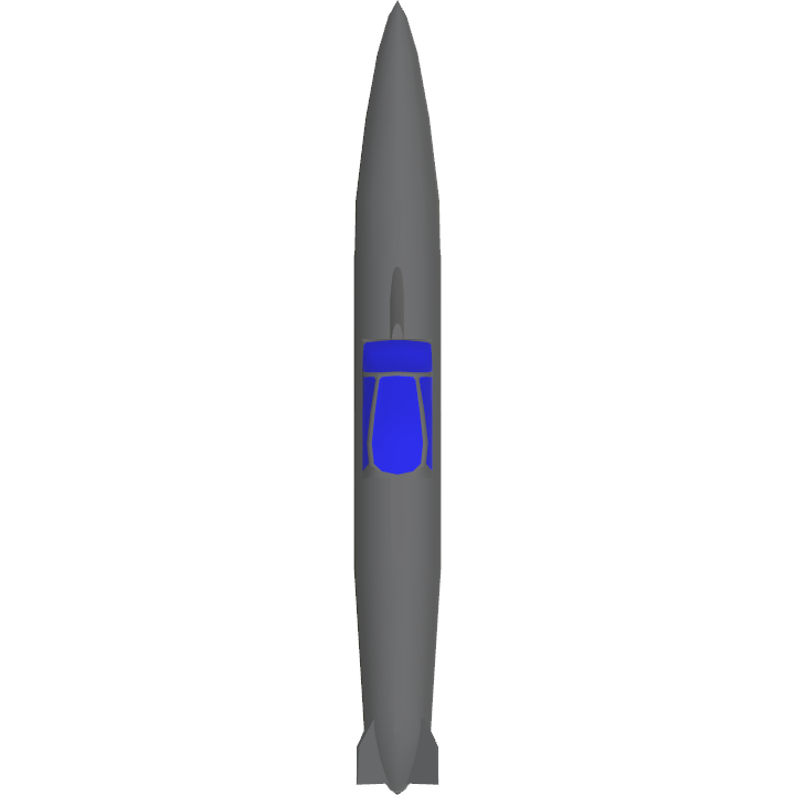 A 680kg/1500lb unguided cluster bomb that releases 4 groups of 7 unguided high explosive-fragmentating submunitions 10 seconds after launch. The HSCB-0 is very cheap, powerful, and good for dive-bombing, but can wobble a little bit in flight due to its small rear fins, and is very inaccurate. The HSCB-0 also features an anti-structure explosive "bunker buster" warhead to make up for its high spread and inaccuracy.