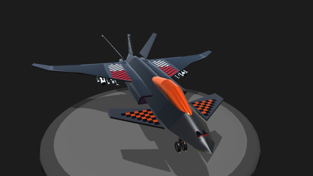 This is a secret little project I have been working on for a few days, and I am very proud of how it turned out! This fearsome fighter's specialty is boom and zoom, it is not made for agilty. It is named after the Fisher Cat, an evil 4 and a half foot weasle-like creature, who makes a noise that sounds like somebody being killed. One of them has decided to reside in my neighborhood, and I hate it. Seriously, look up the noise it makes. Groups 1-4 for missiles, both ATG and ATA. 5 for parachute. I hope you enjoy!