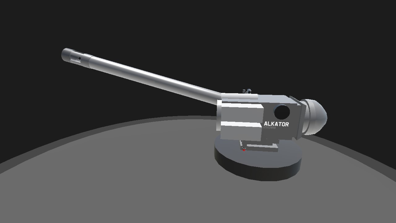 Alkator cannon. Fires shell at 900/ms and an shell which is 250mm the alkator cannon is an artillery which can shoot between long distances. And the shell is an HE - high explosive.