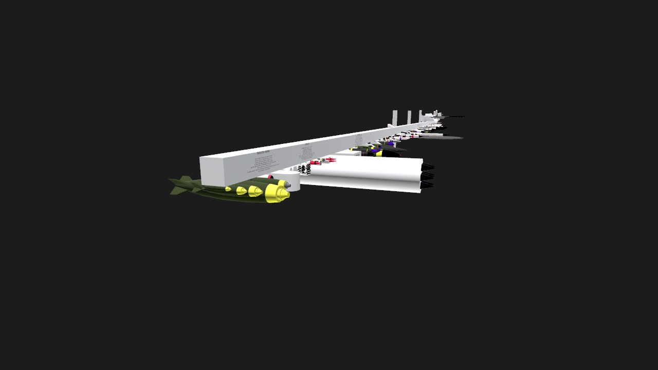 (My first post!) Us at Seacom Defense/Defence Industries, believe it or not, have a motto; "In guns we trust." And so, this is a collection of all weapons we've made over the years alongside our nemesis-turned-best friend Krakabloan/Krabakaloan Aeronautics. Now, most of these weapons will be different than the versions we use, because we want you to have the best experience possible with them. Catergories are: Unguided Bombs, Rockets, Guided Bombs, Missiles, Guns & Gunpods, Turrets, and Miscellaneous. And, unfortunately, you'll need quite a few mods to fully enjoy our vast arsenal! But fret not, you cheeky mobile players, for we are working on a no-mods-required version just for you! (Just saying some of them were stolen from other amazing folks, whos' usernames we have unfortunately forgotten, but huge credits to them)!
