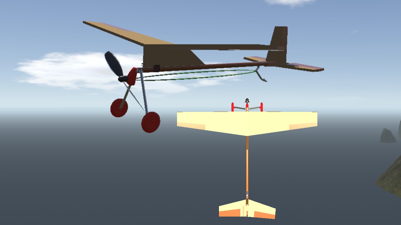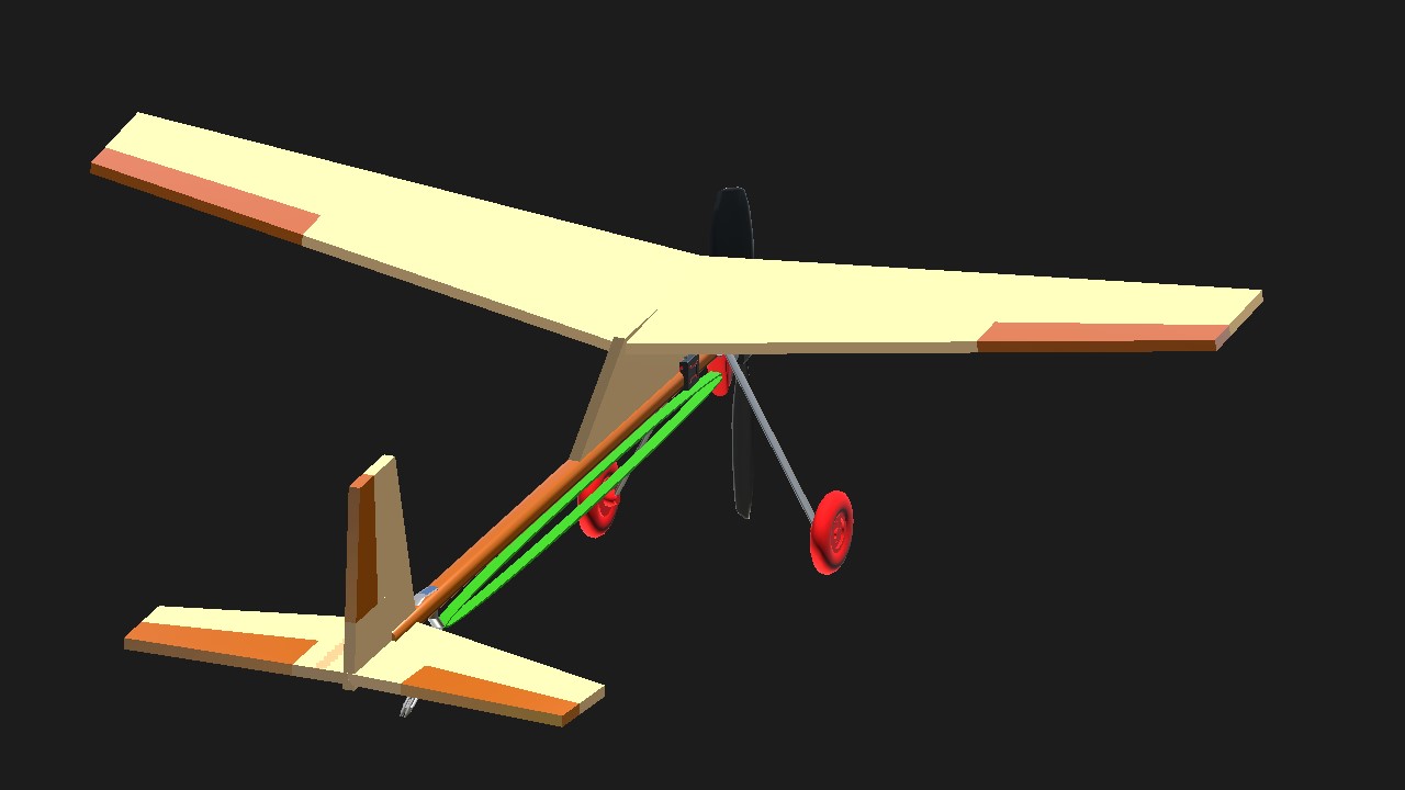 Simulation of a free-flight rubber engine toy plane.
