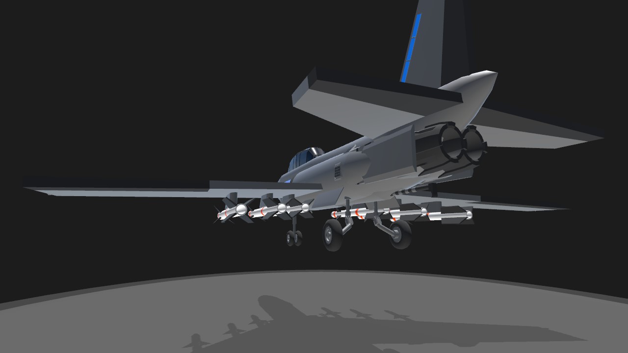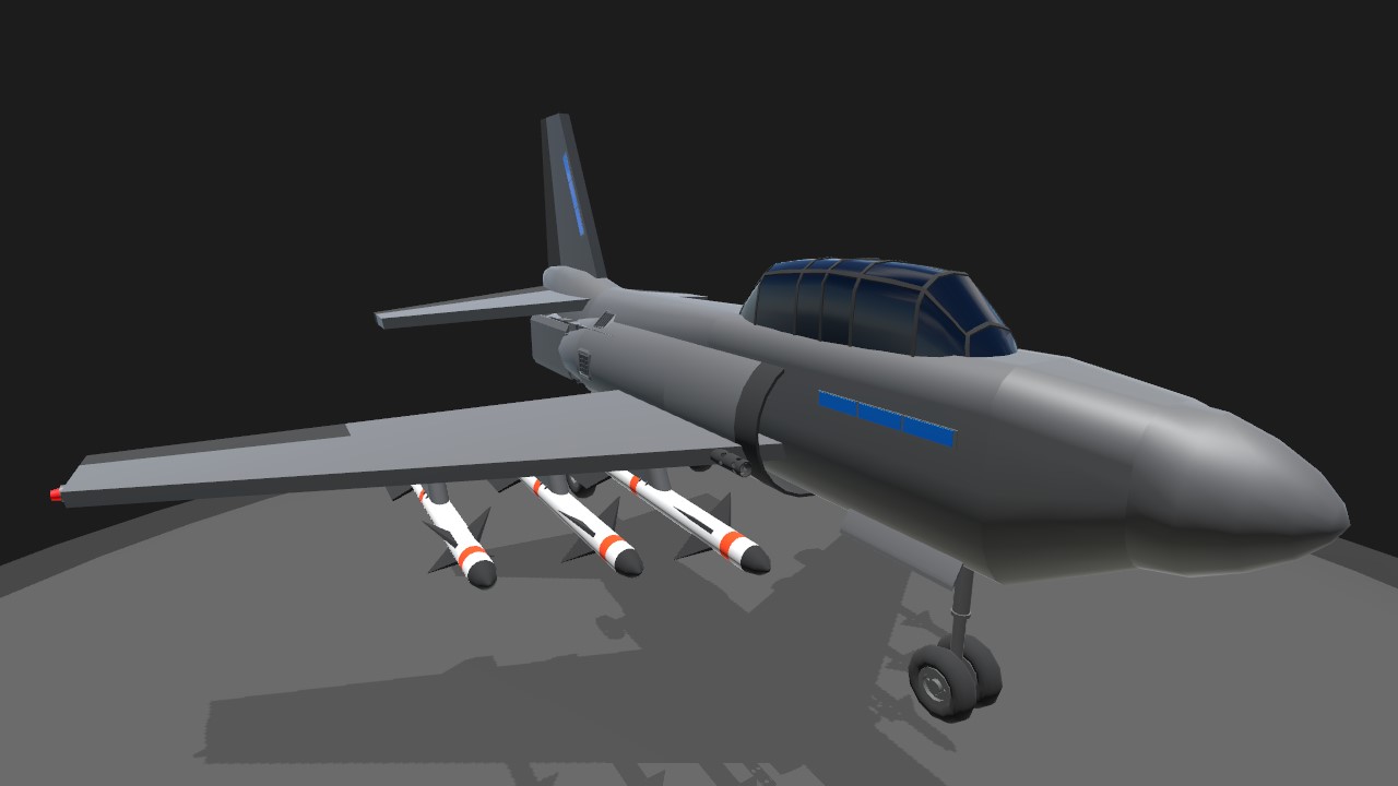 This is a fictional 1st gen jet light fighter air craft. It is an improved version of the RAT-01 with enhanced performance. Its top speed is 1200km/h(745mph). It takes 15 seconds to complete a 360-degree turn in level flight. It is equipped with two machine guns and six Guardian missiles. The air craft is also equipped with three flares and two chaff dispensers. Pressing 1 activates the arresting hook. Pressing 2 activates the aircraft lights. Pressing 3 activetes the formation lights. Pressing 6 jettisons the weapons.