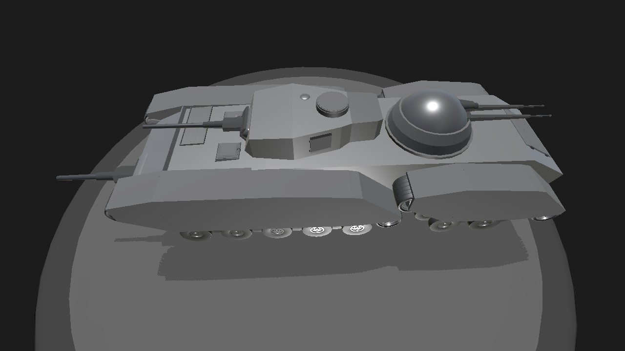 Я уже вижу тысячу и один недостаток такого танка с точки зрения. Реальности 🤓 хотя впрочем он выглядит четко да и задумка с 4-мя катками позволяет в случае цурч одения передних отъехать или продолжить езду также есть минус что башня (основная да и зенитная) не способны вращаться Яна 360 впрочем я уверен ты это так и спланировал иначе не делал бы так