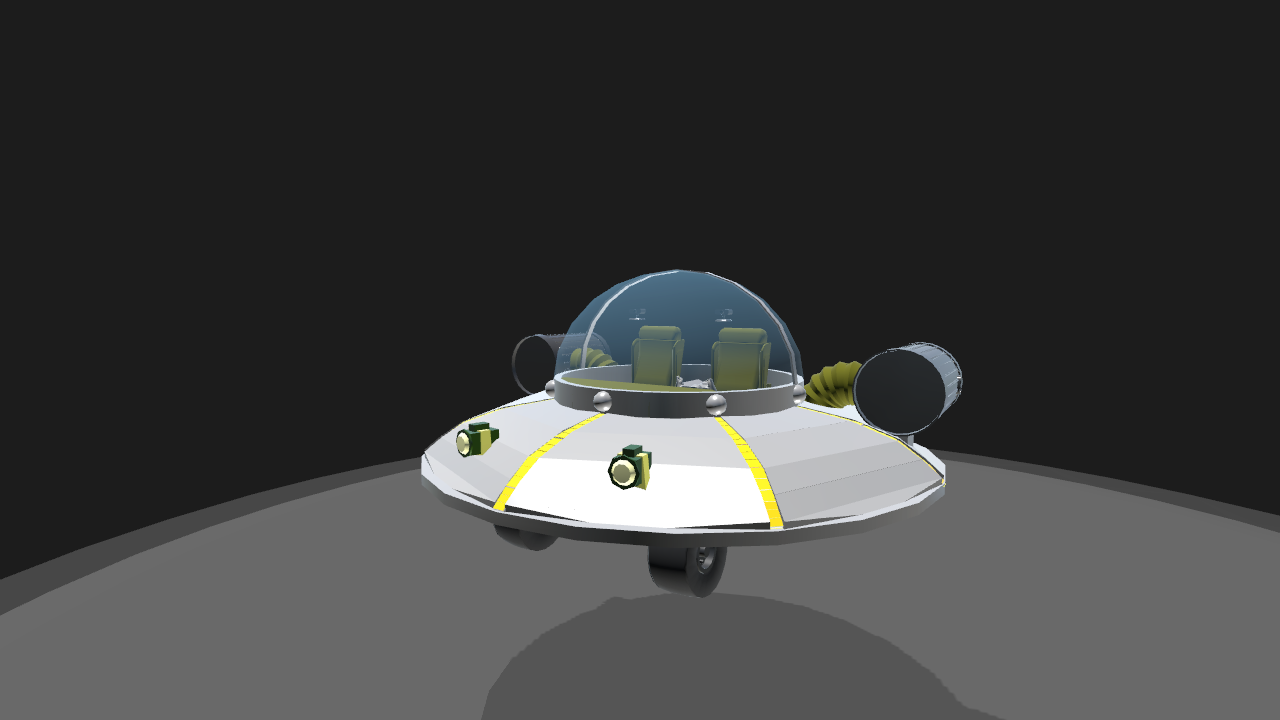Here is my version of Rick's ship. complee with guns, bombs, missiles, cannon, and VTOL capabilities! Wish i could have included more features like the cannon tbubble that comes from the bottom or the multiverse vattery but unfortunately I ran out of Action Groups t o do all that i wanted to do. It's not exactly show accurate but it's a fun ride to go and harrass the warships with.Start with throttle at 5-15% to lift straight up AG1 + VTOL-Up will shift the craft from Vertical take off to horizontal flight thrust. once in stable flight, disable AG8 (this is the Gyroscope that balances the ship during takeoff and landing.) LandingGear retracts the wheels for flight mode. (yes the wheels do stick out a little during flight in the show) AG1+VTOL: Changes thrust from UP to FORWARD AG2+VTOL: Deploys minigun AG3+VTOL: Arms the Air-to-Ground Missiles AG4+VTOL: Opens Bombay doors AG5+VTOL: Opens Flares & Parachute door AG6+VTOL: Deploys cannon AG7: Parachute AG8: Gyroscope toggle Note: It's a good idea to disable AG1 when in stable forward flight. That way if you open any of the other action group's hatches and you wanna shut them, you dont accidentally change your thrust vectoring. All Weapons/Bombs are idiot proof. So if you forget to open a door before firing a weapon, You probably won't blow yourself up ;)