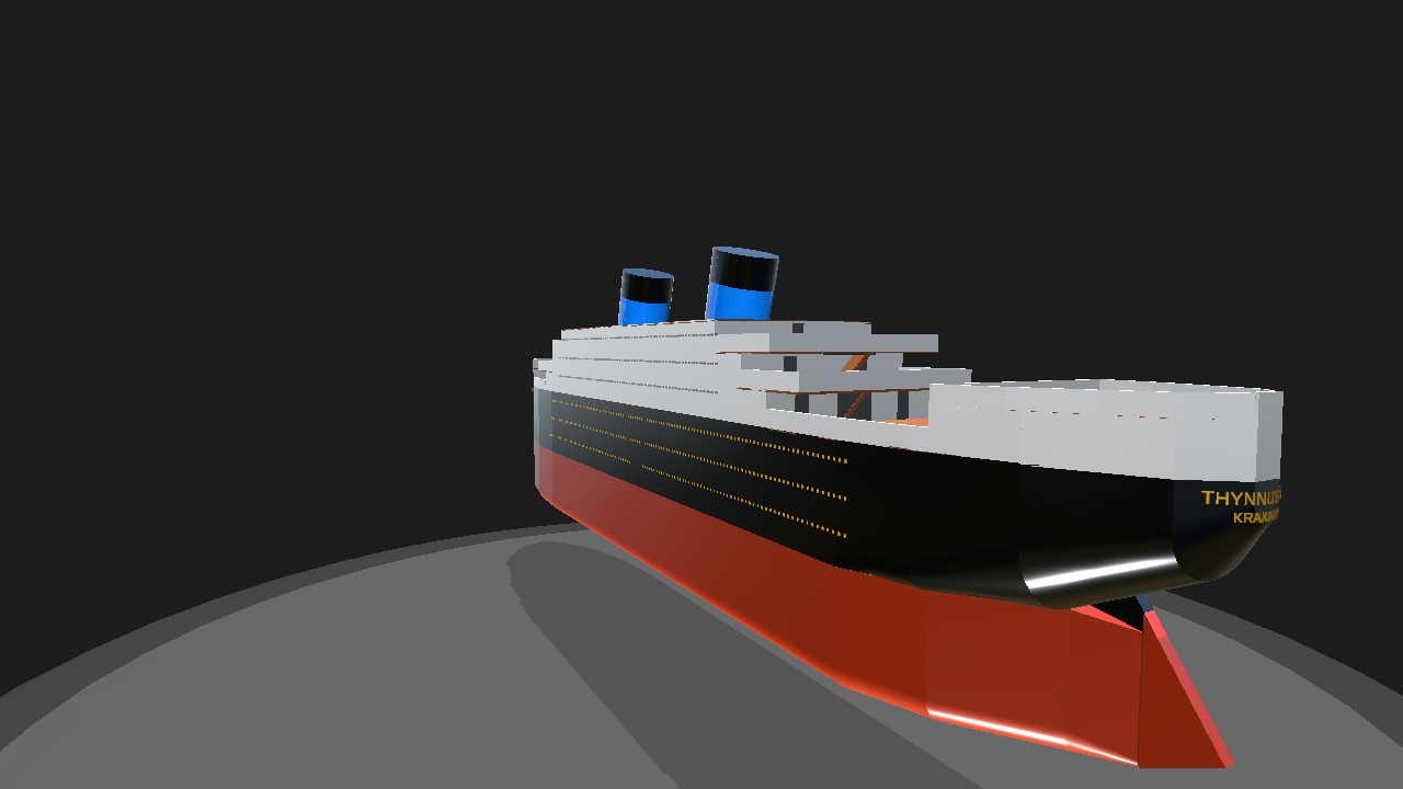 WARNING: DIFFICULT TO OPERATE to operate succesfully, you need to use Q and E in moderation to turn, using Roll in the same direction as hard as possible to prevent capsizing. you still might capsize. OTHER INFO: the first art deco style ocean liner in the Thynnus Line fleet. an early art deco airliner from just before counter sterns were replaced by cruiser sterns. and then transom sterns. built in 1928, this ship had a close shave with the breakers in 1936, as the great depression meant less demand. the ship made it to WWII, and met all the P-51s and stuff, and this ship made its way onto Simpleplanes.com with the help of a P-51, as most of them went to simpleplanes after the war.