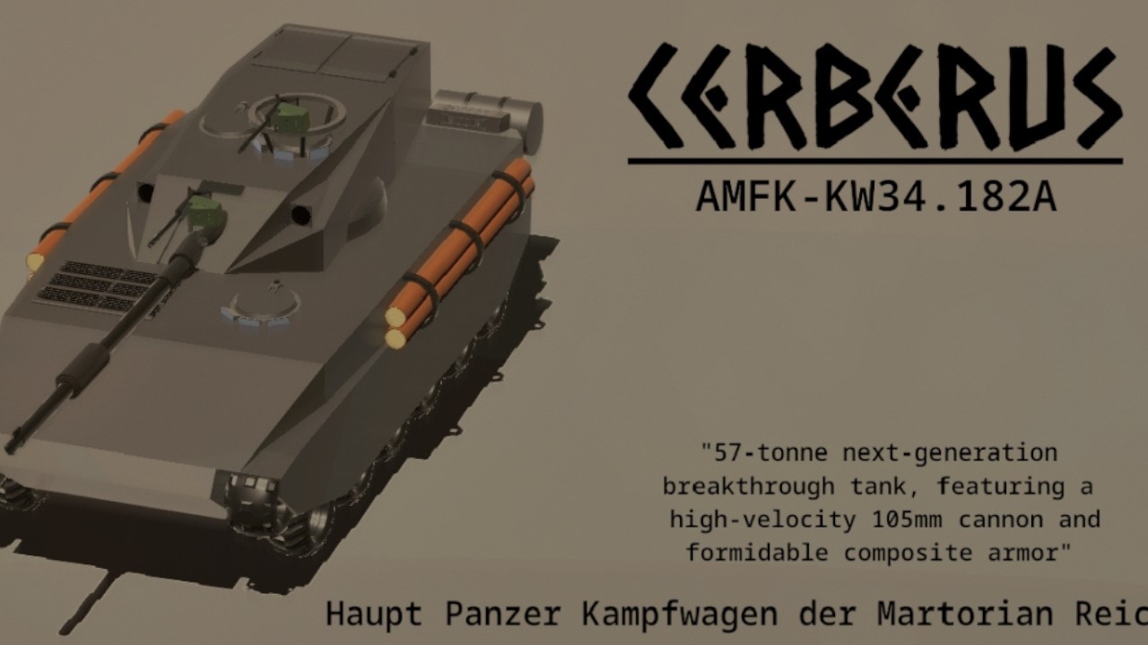 History of development: Hpt.Pz.Kpfw. Cerberus AMFK-KW34.182A — Main Battle Tank / Breakthrough Tank: